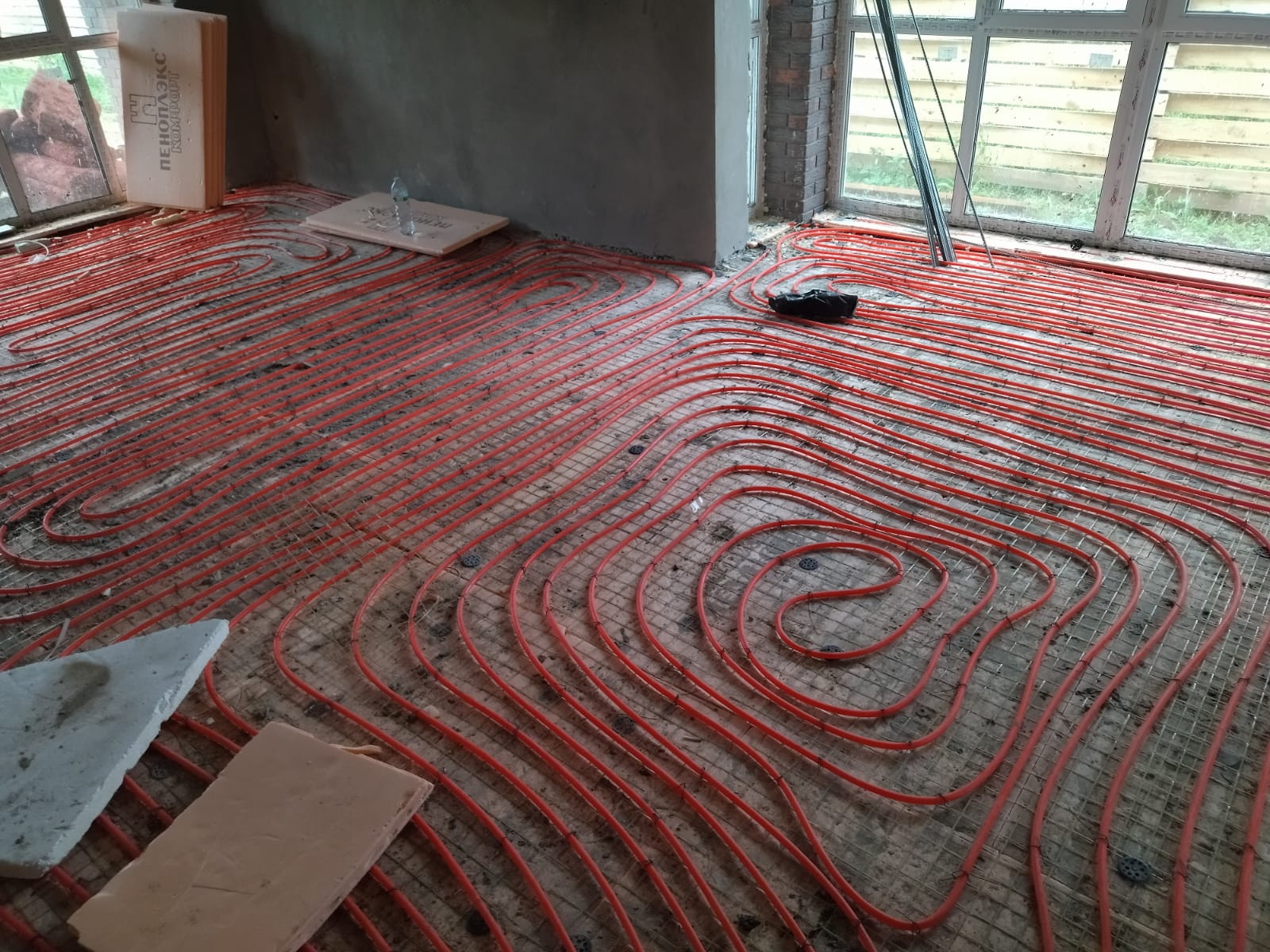 - теплые водяные полы по всему периметру дома готовы для укладки плитки, ламината, паркета или линолеума;