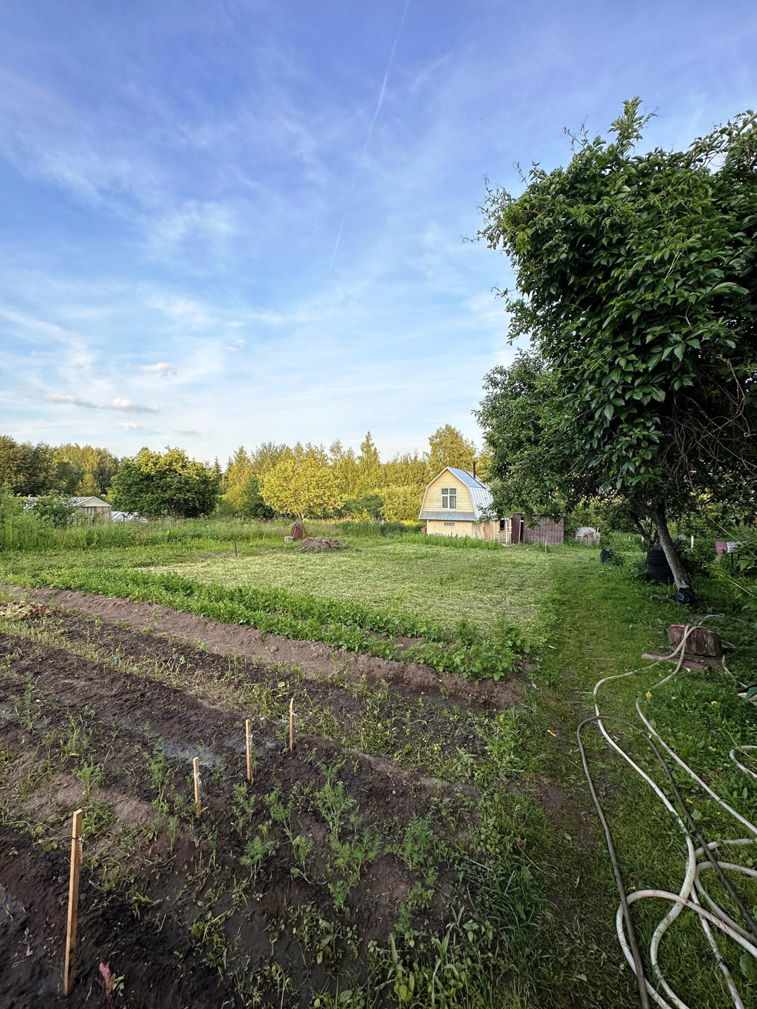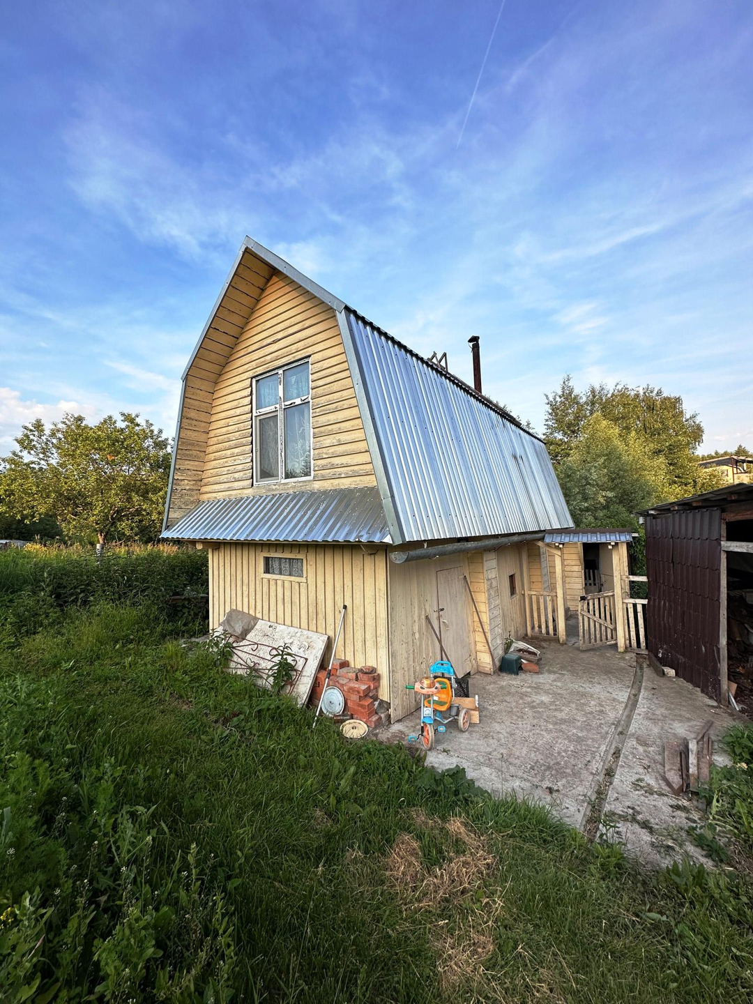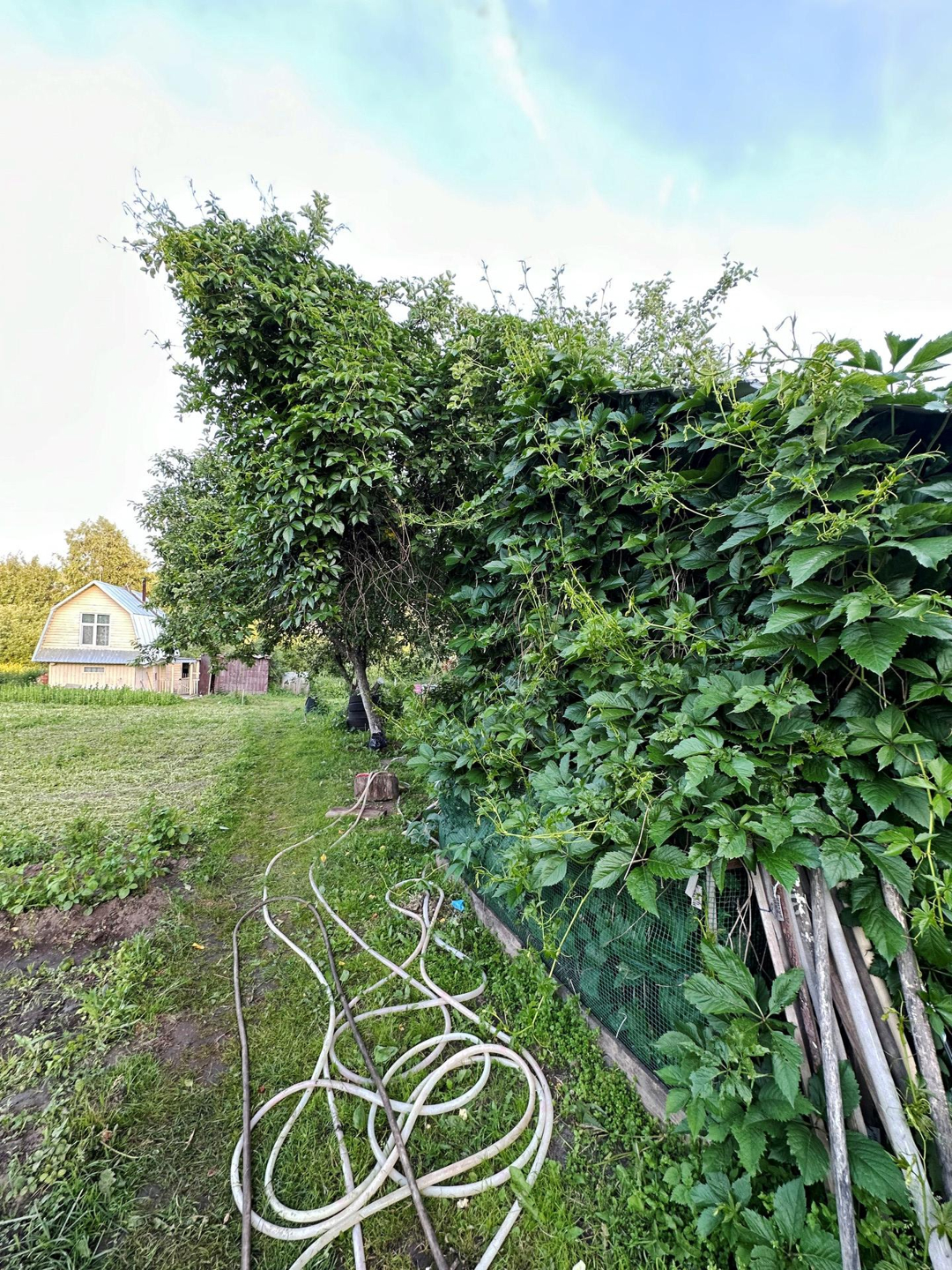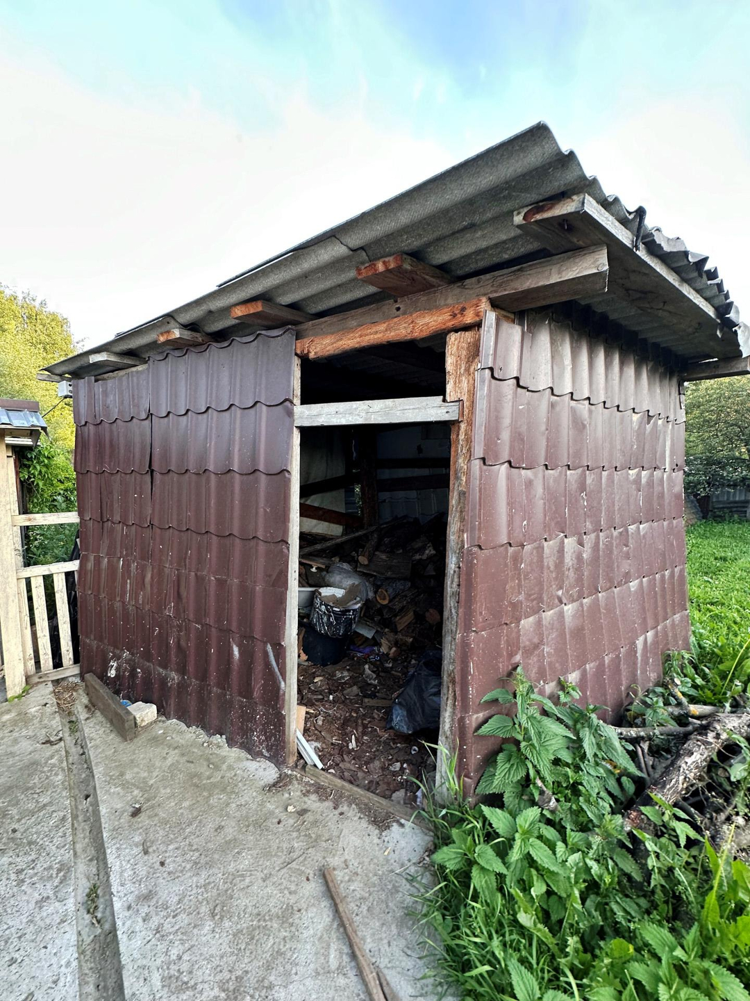 На участке стоит гараж, дровник, баня, теплица из поликарбоната.