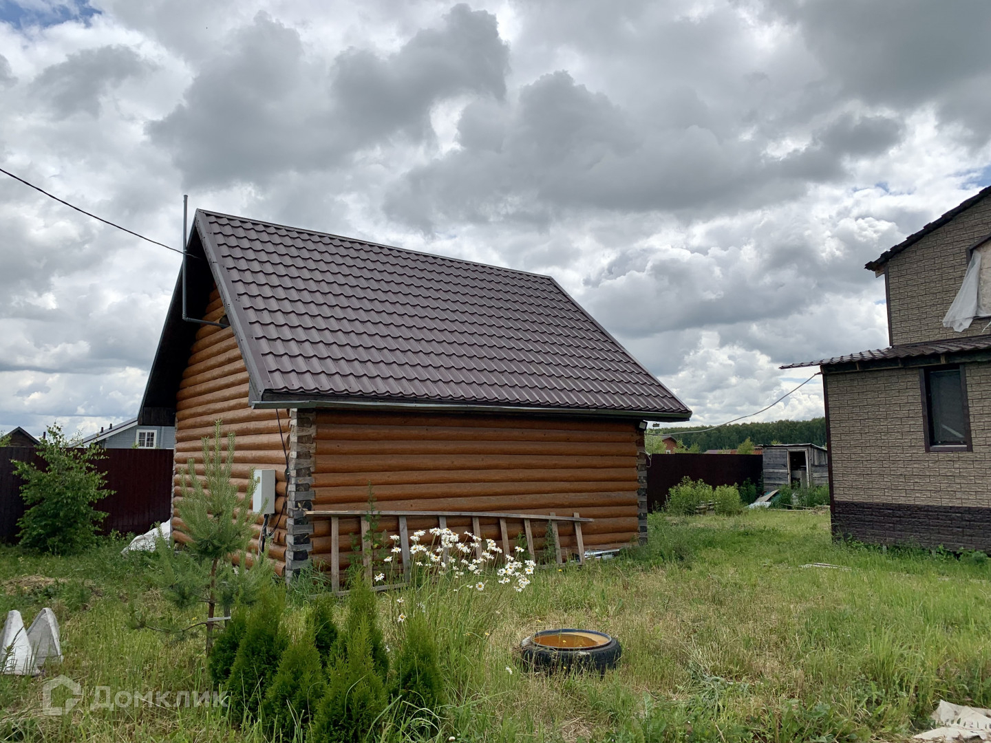 На участке также расположена баня, сруб 6*6 на ленточном фундаменте. Вода подведена, залит фундамент для печи. Окна в баню в наличии.
