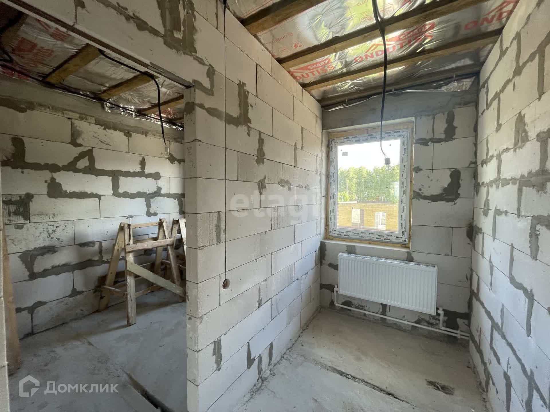 Выполнены все основные работы: газ и электричество заведены в дом, скважина, септик, на первом этаже теплый пол. В подарок будут поставлены перегородки и отштукатурены стены на втором этаже.