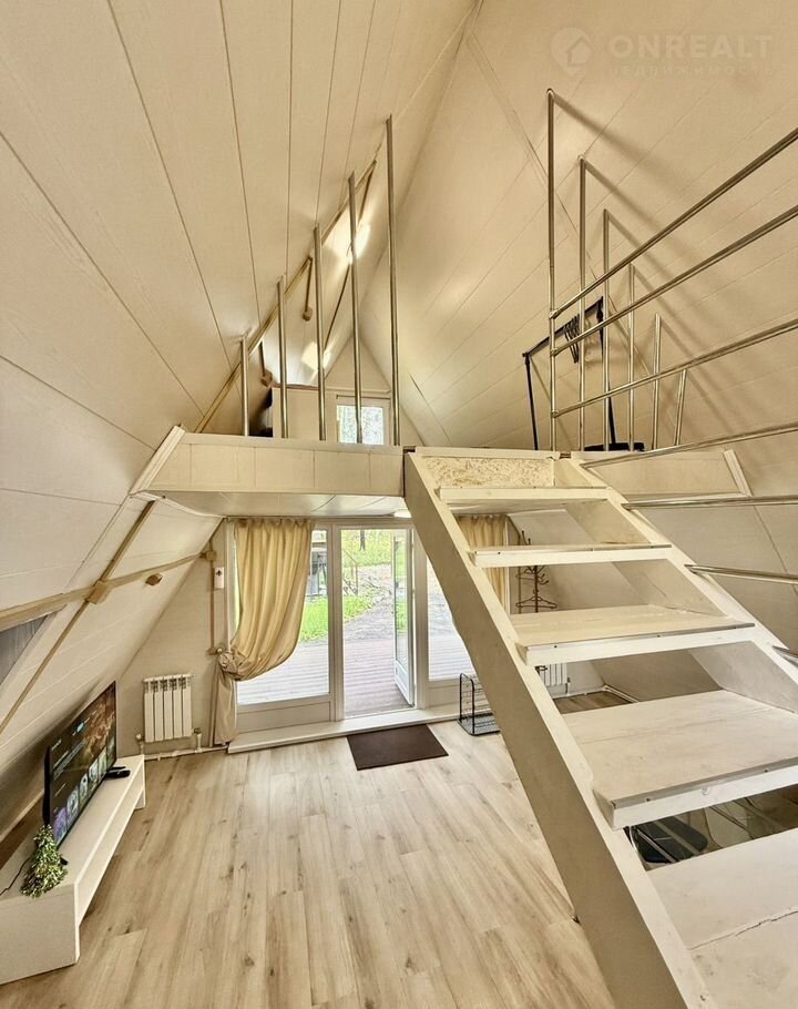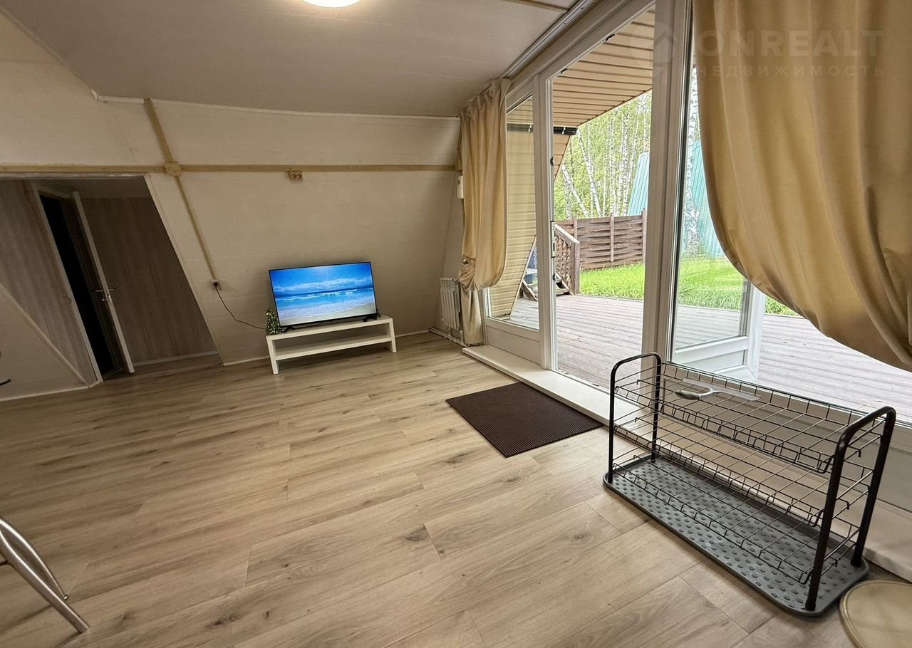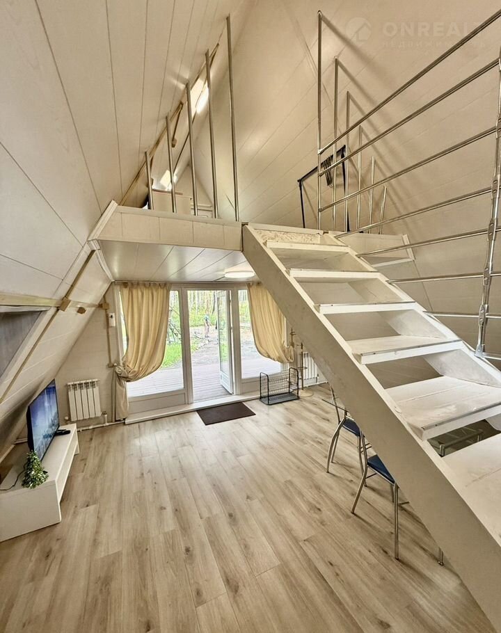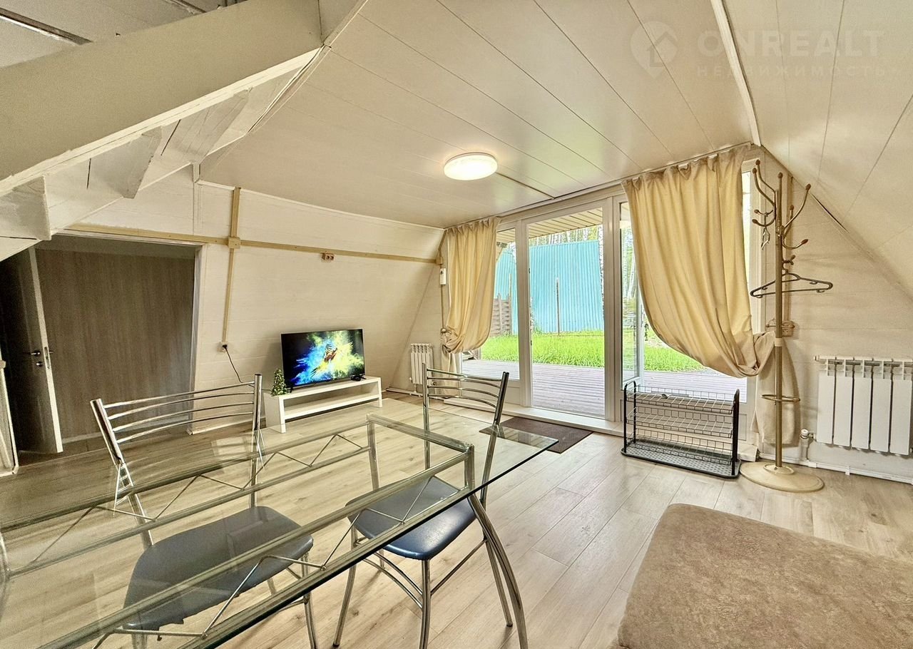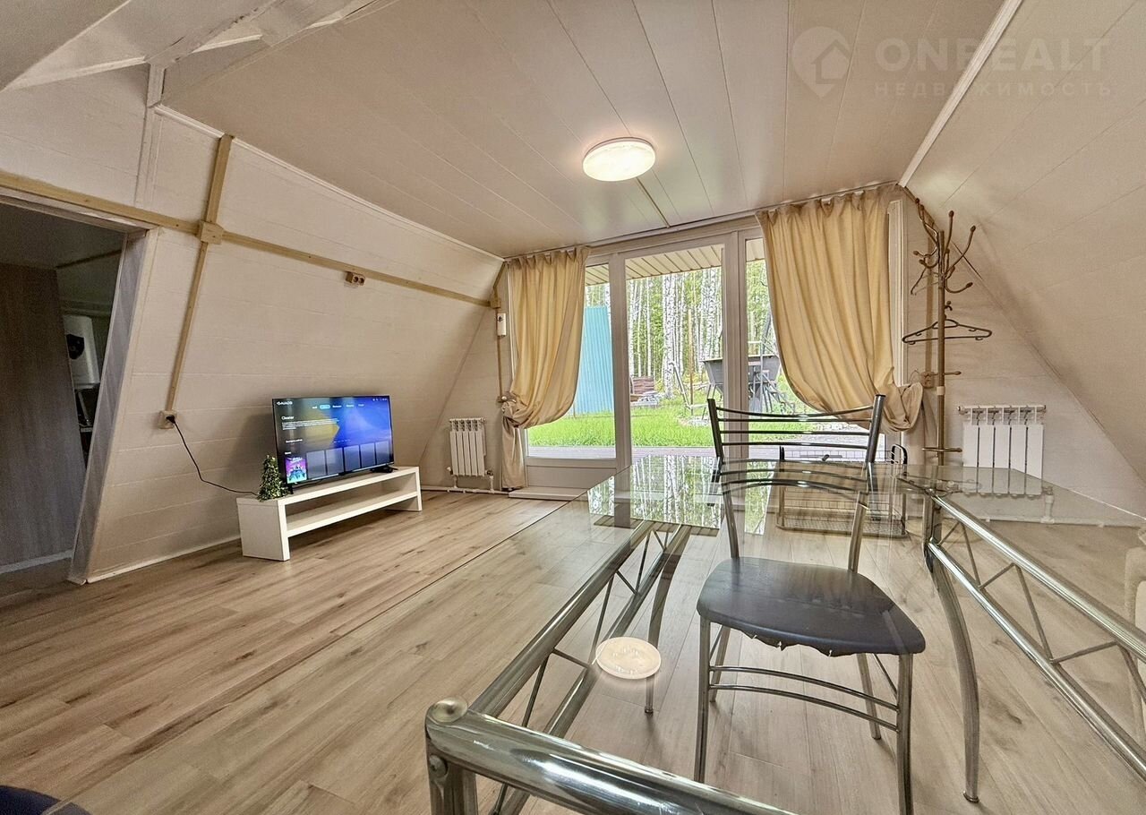 •    1 этaж: дивaн, cтол, стулья, тeлевизop, пaнорамные окна c видoм на лес и ухожeнный гaзoн;