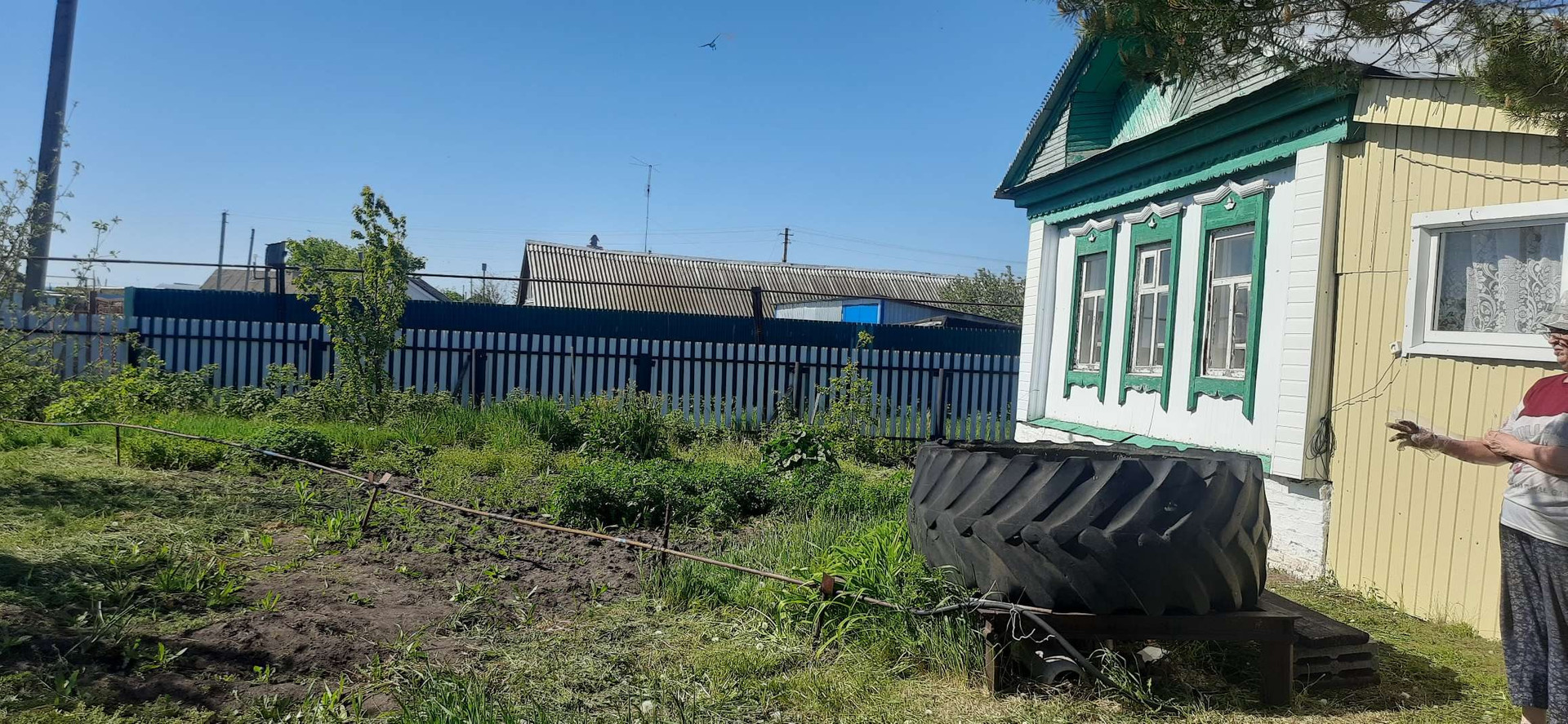 Широкий , просторный двор, ухоженный с насаждениями огород.