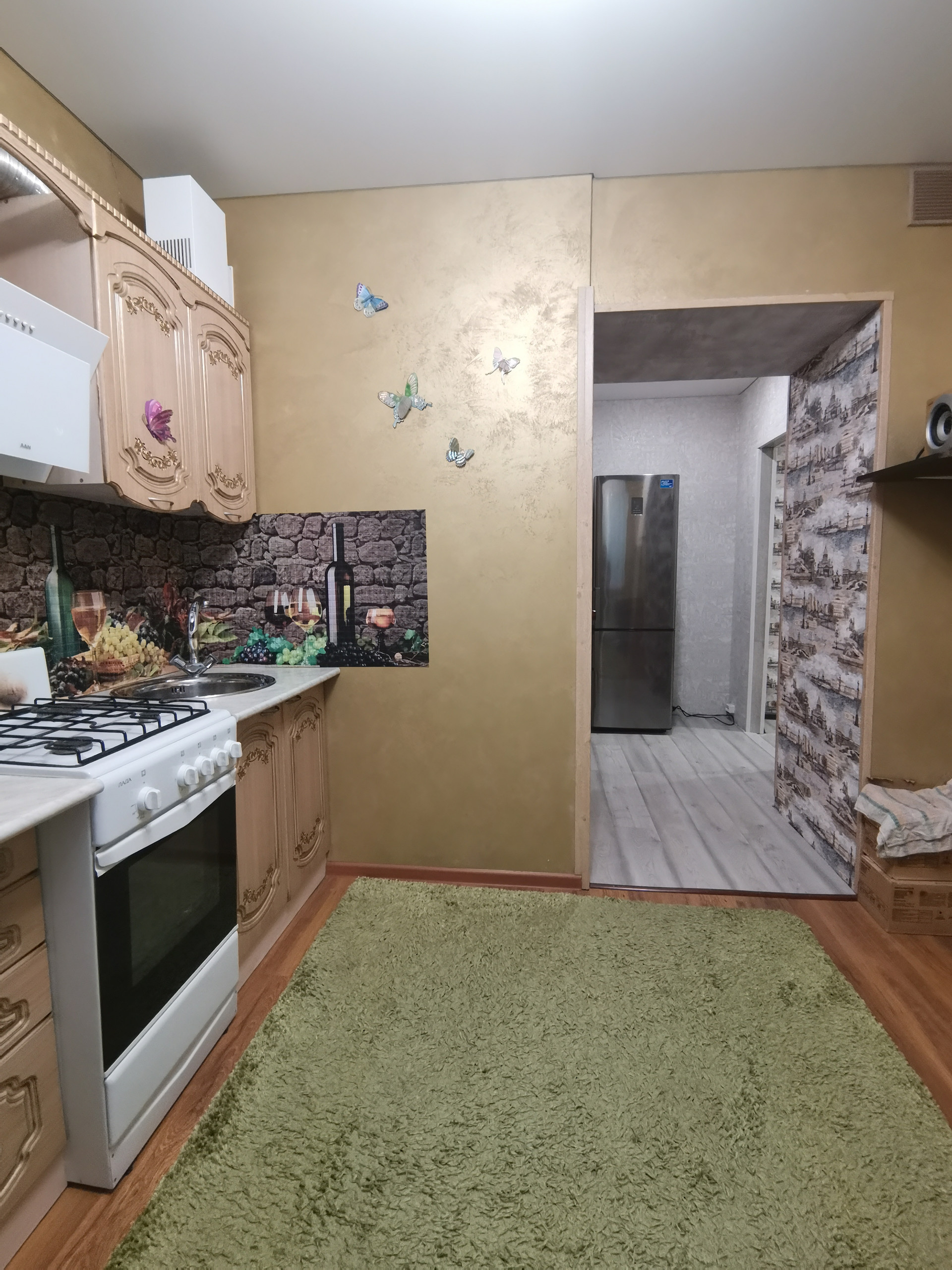 Не угловая, не торцевая. В квартире останется мебель и техника.
