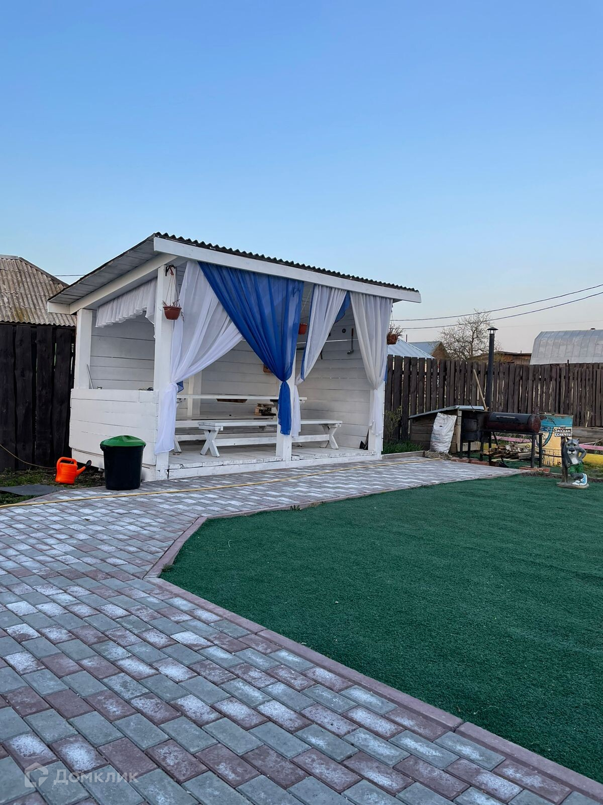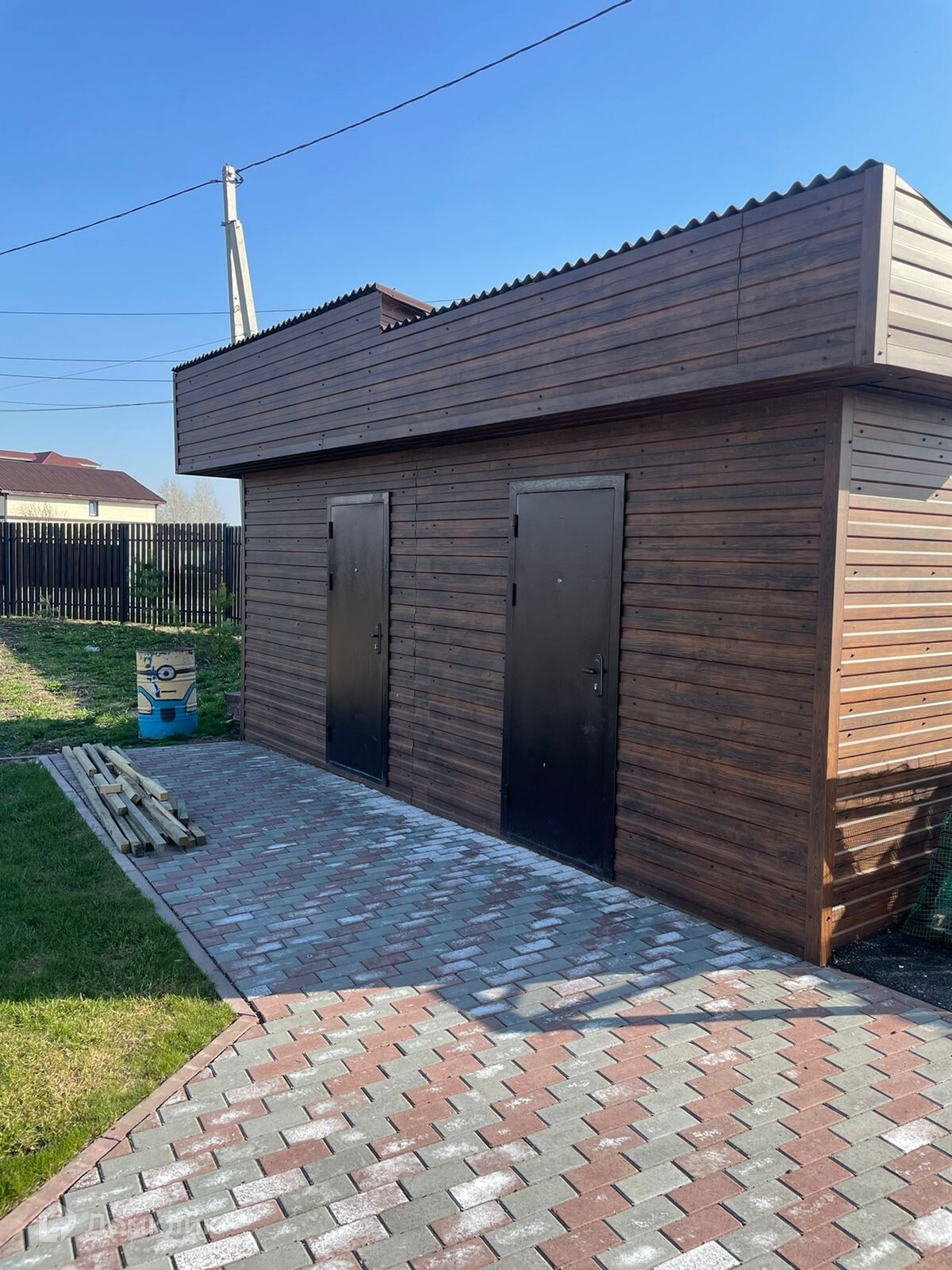 Наземные постройки: беседка, бревенчатая баня, углярка, хоз.блок (сарай). Есть гараж 72 м2. С гаража вход в дом.