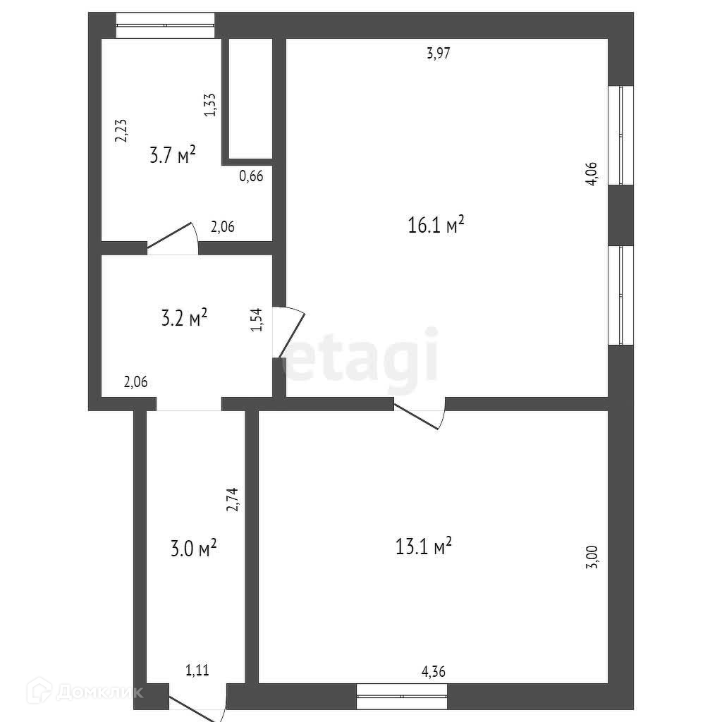 Общая площадь 39.1 м2