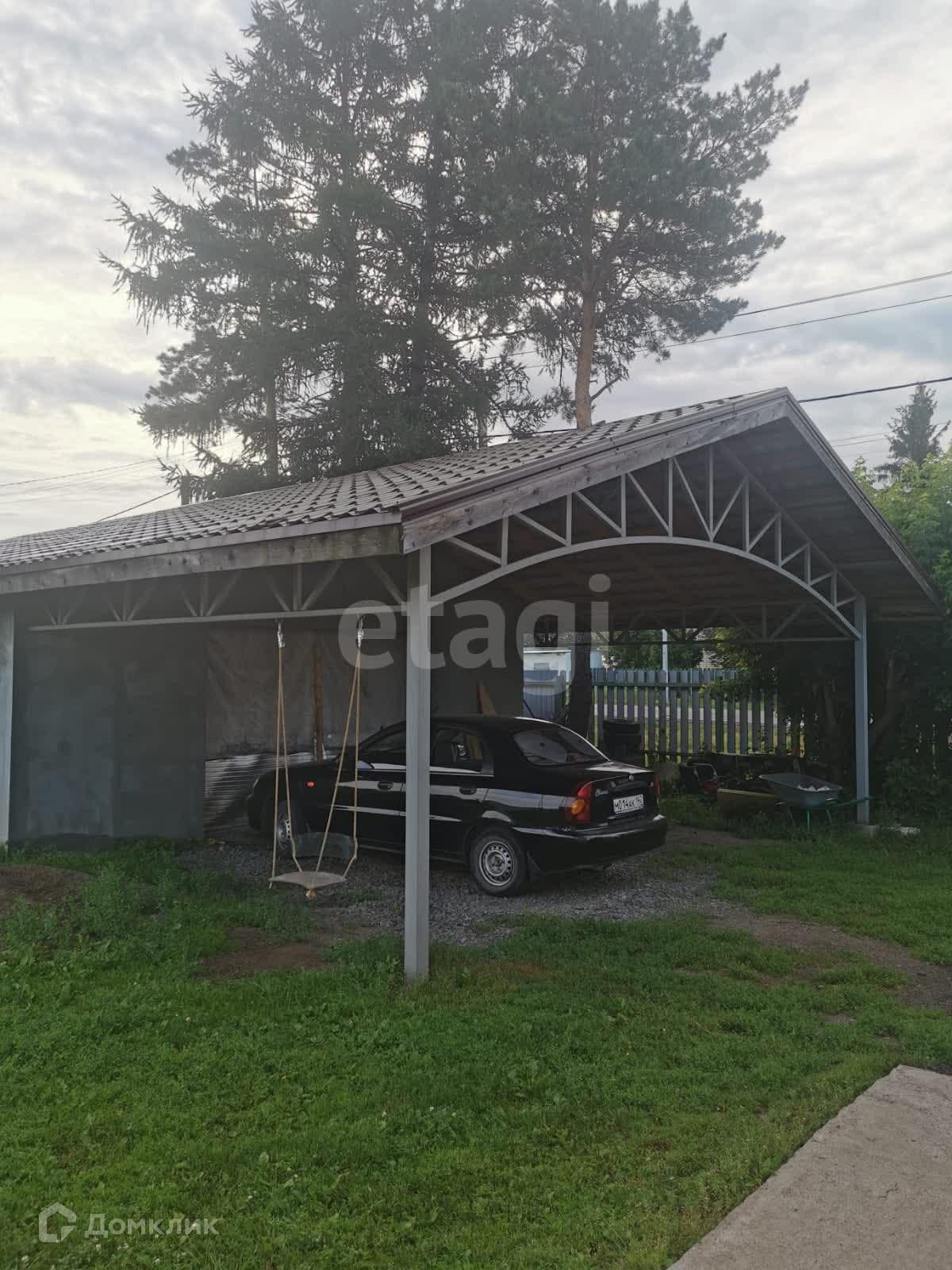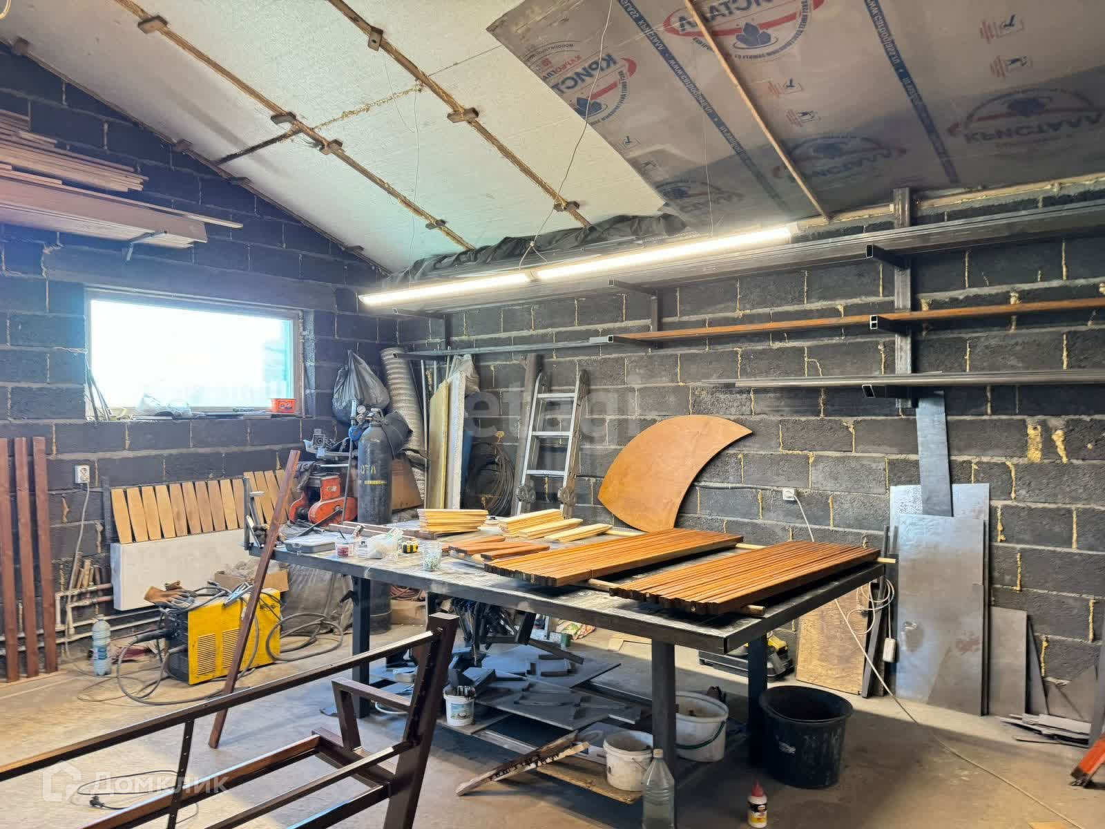 На участке установлена теплица, обтянута полиэтиленом, баня, погреб (также есть подполье в доме) и гараж. Гараж на 2 машины, есть навес, под которым можно разместить ещё 3 машины. Внутри гараж утеплен, проведен незамерзающий теплоноситель, который можно отключить при желании. Также заведена вода, установлена раковина.