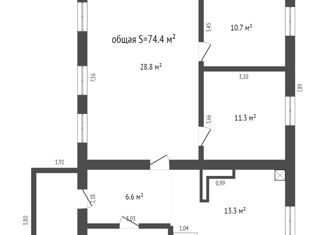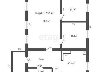 Общая площадь: 74.4 м2