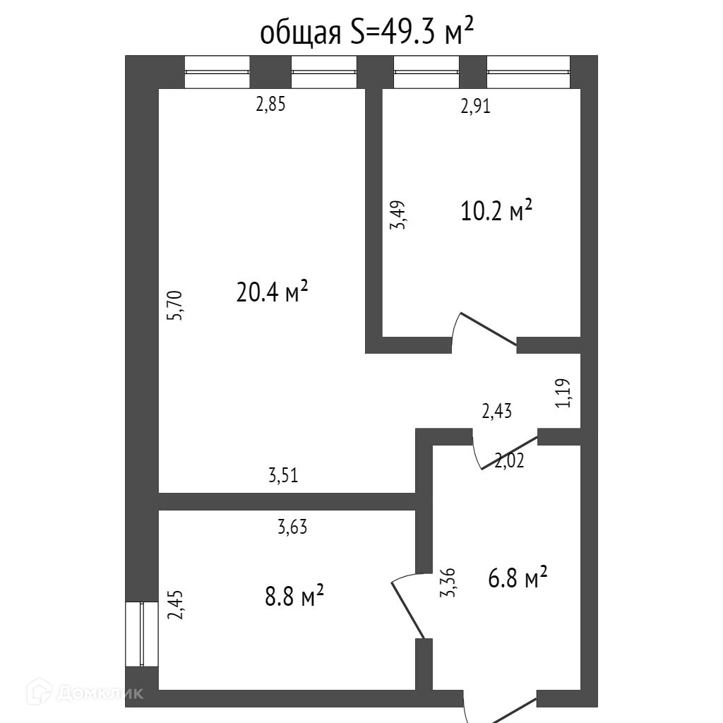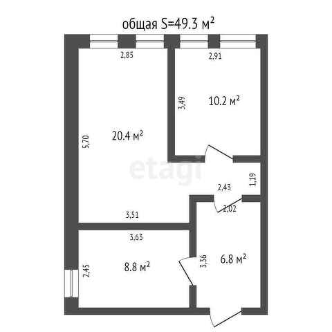 Общая площадь 49.3 м2