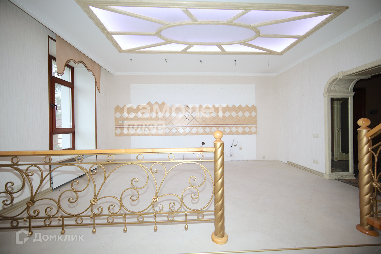1 уровень: просторная гостиная с камином и кухонной зоной, санузел, гардеробная, балкон.