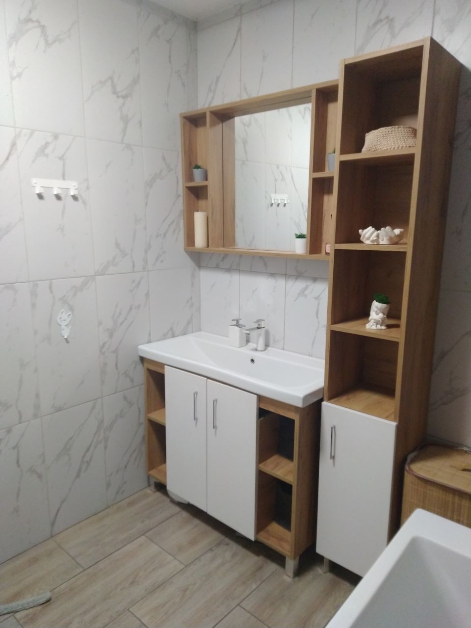 1 этаж сделан ремонт ,спальня , прачечная, кухня- гостиная, ванная комната.