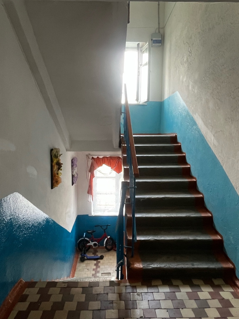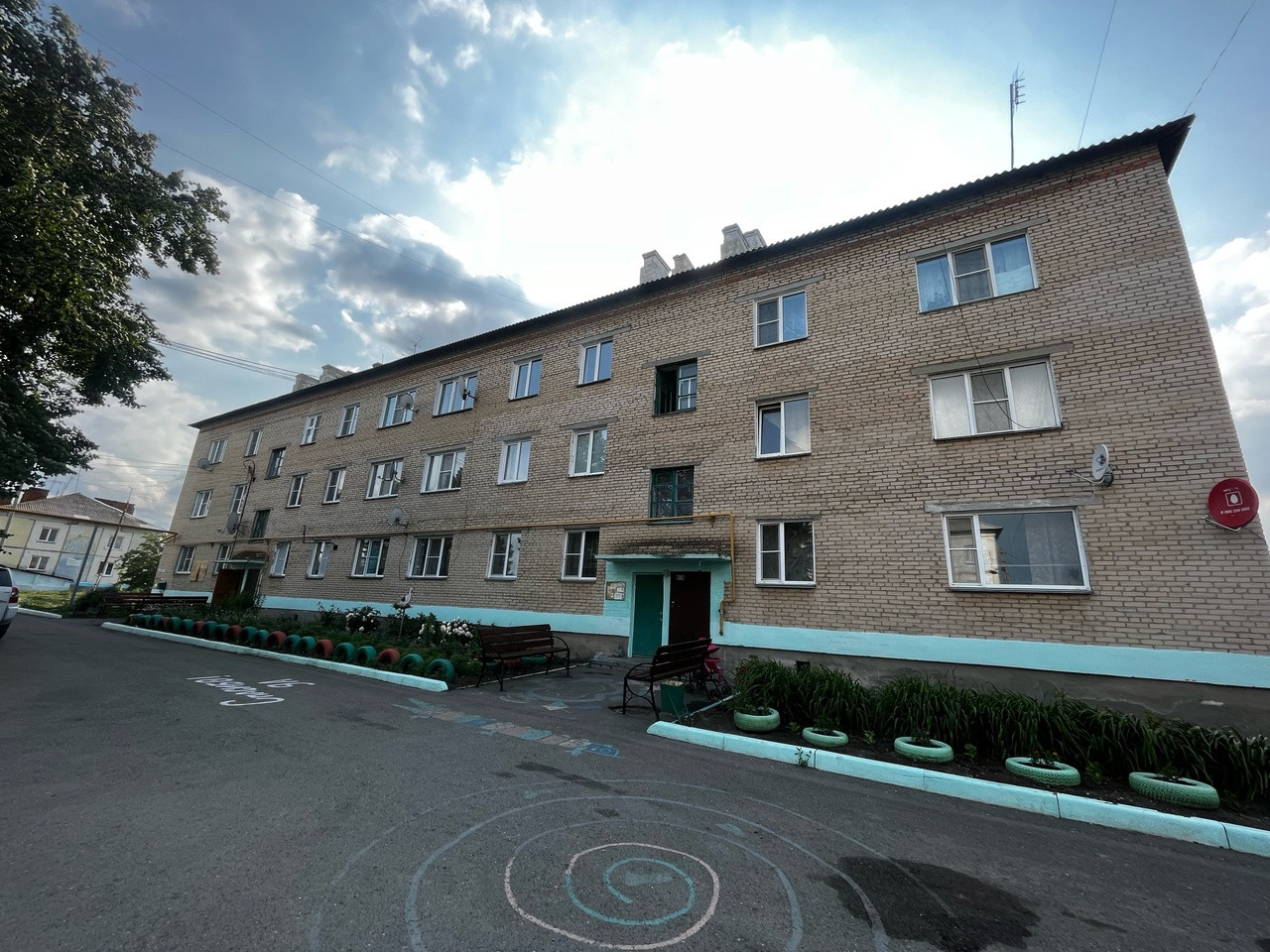 Трехэтажный кирпичный дом с детской площадкой и парковочными местами. Облагороженная придомовая территория и асфальтированная дорога. Во дворе камера видеонаблюдения (не домофон). На площадке расположены четыре квартиры с тихими соседями.