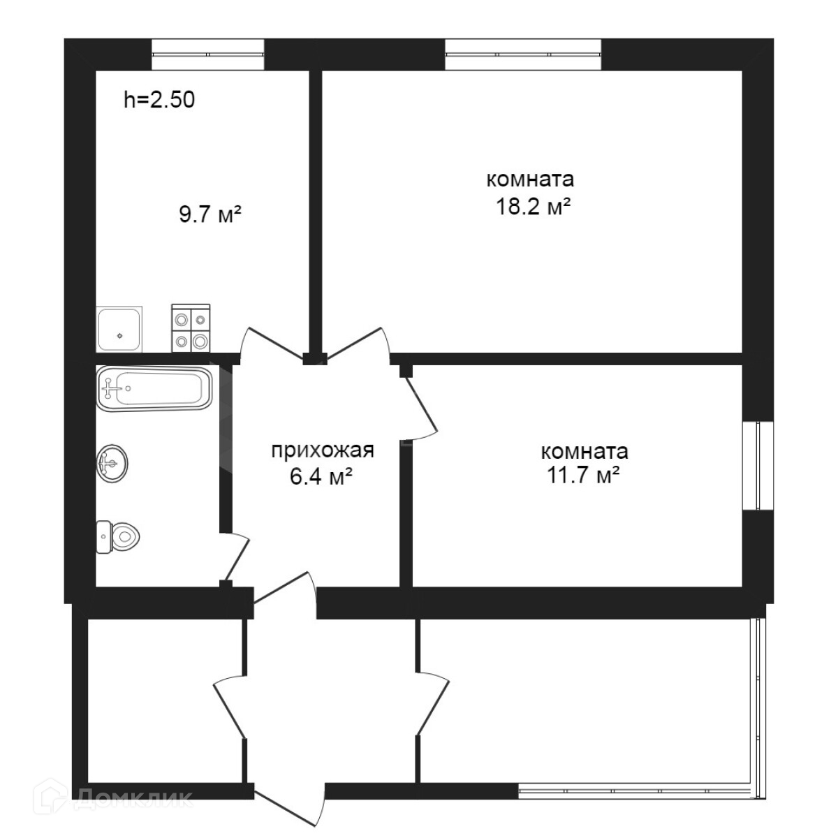 Общая площадь 51 м2