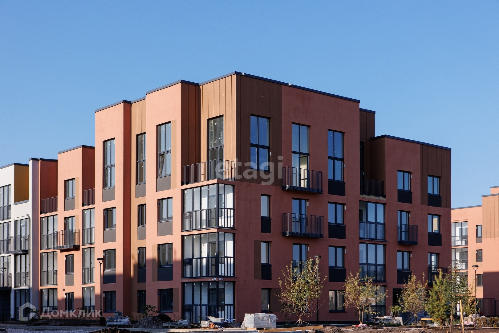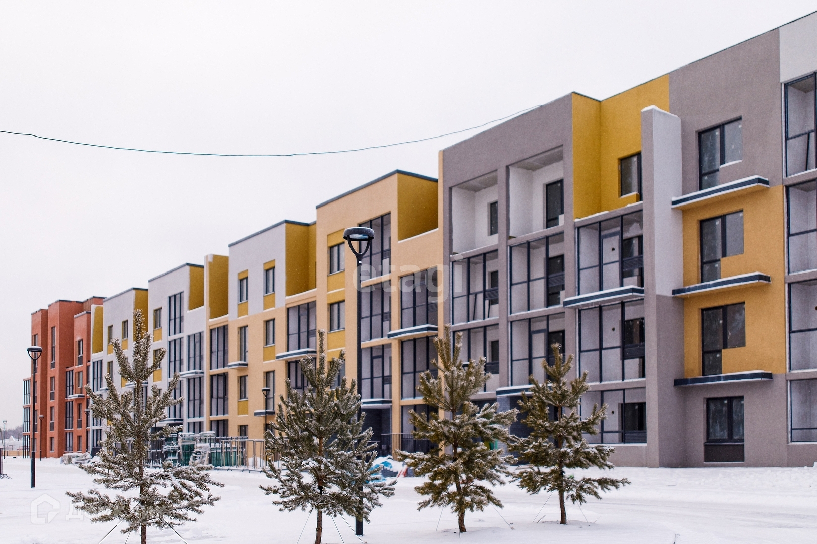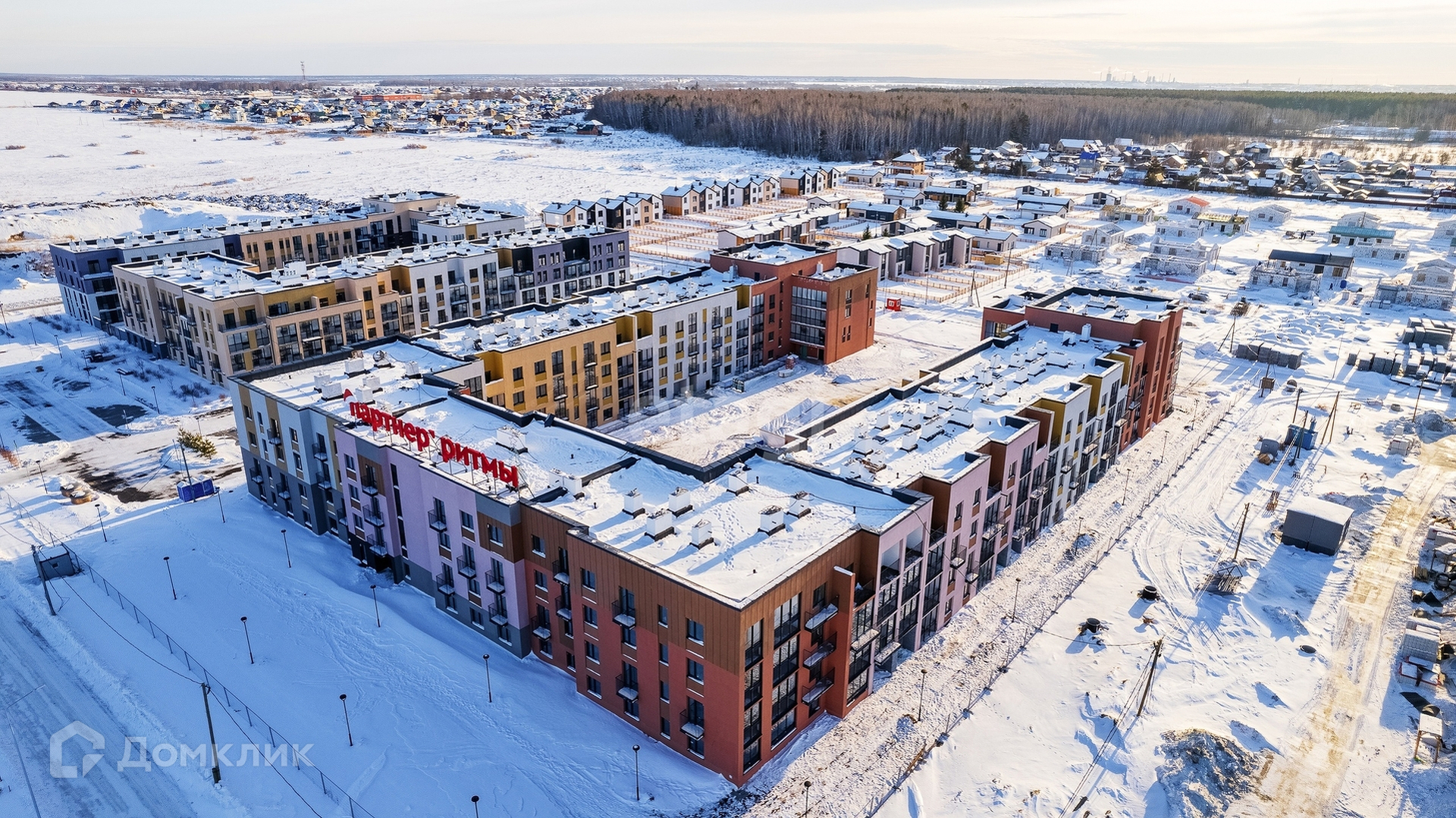 Малоэтажные дома до 4 этажей соразмерны деревьям и не скрывают кромку леса.