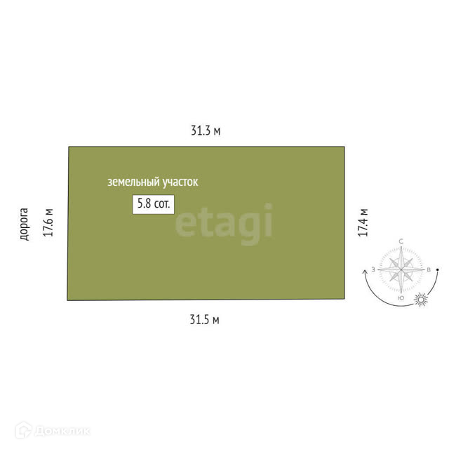 Площадь участка 5.8 сот.