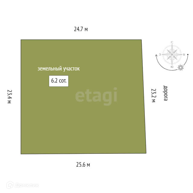 Площадь участка 6.2 сот.