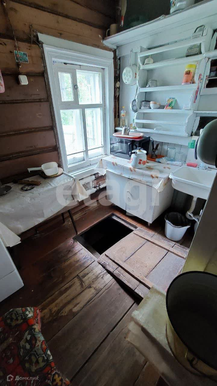 В продаже одноэтажный рубленный дом общей площадью 60 кв.м. Земельный участок 16 соток. В доме просторная светлая комната, кухня с русской печью, прихожая, холодный коридор, сени, высокий чердак и глубокое подполье под всем домом. Установлен газовый котёл, отапливаемая площадь 30 кв.м, есть электричество, водопровод. Дом тёплый с высоким фундаментом. Во дворе баня рубленная 20 кв.м, дровник, хозяйственные постройки, можно разводить скот. Земля не обработана. Дом расположен в тихом спокойном посёлке, подъезд к дому заасфальтирован. В шаговой доступности детский сад, школа, магазин, почта, мед.пункт, ж/д станция, автобусная остановка, груглогодичное транспортное сообщение. Недалеко лес и река, всё для отдыха на природе. Дом подойдёт для постоянного проживания или покупки под дачу.