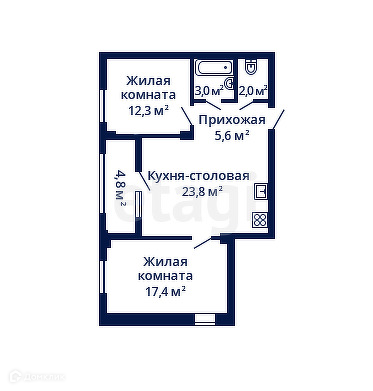 Общая площадь 41.2 м2