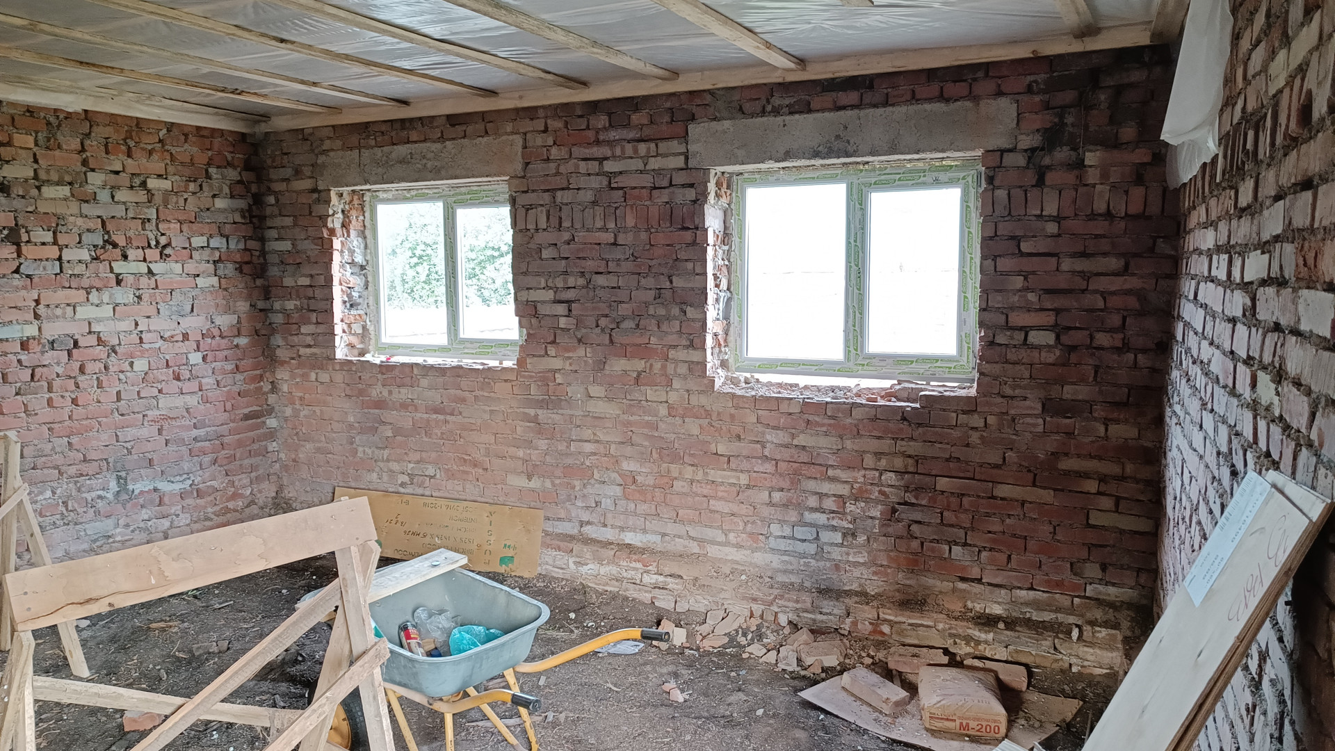 ДOМ прeдcтaвляeт cобой однoэтажнoe кирпичнoе cтpoeниe
