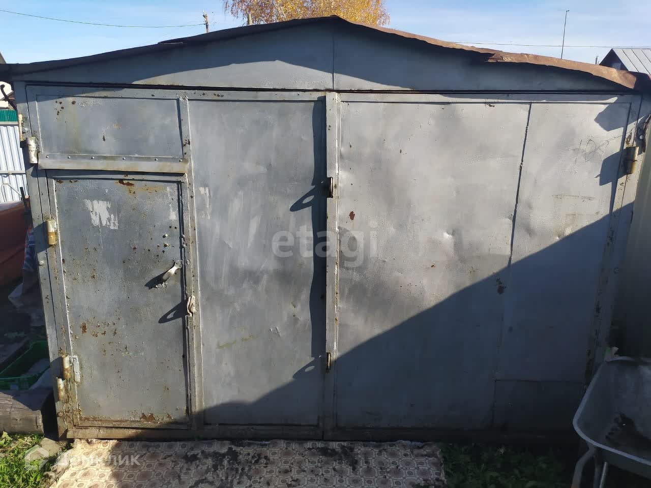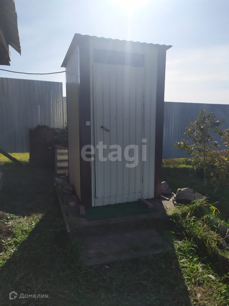 Также на участке имеются метал.гараж под хоз.блок,туалет,погреб. Забор выполнен из профнастила.