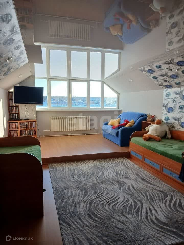 В доме выполнен современный ремонт. На первом этаже расположены кухня и две комнаты, на втором этаже детские спальни. В доме установлен твердотопливный котел, две станции на воду. Септик.