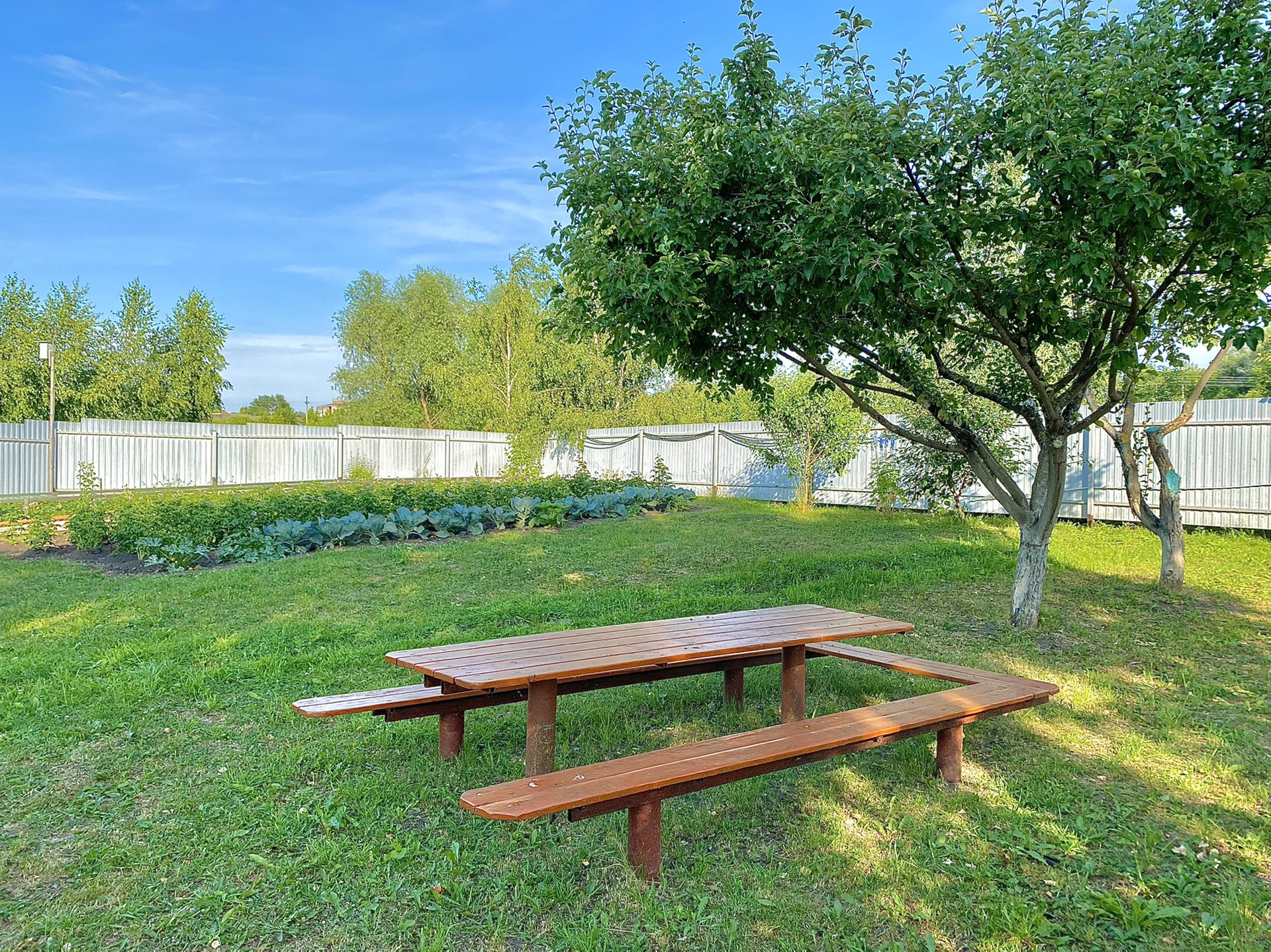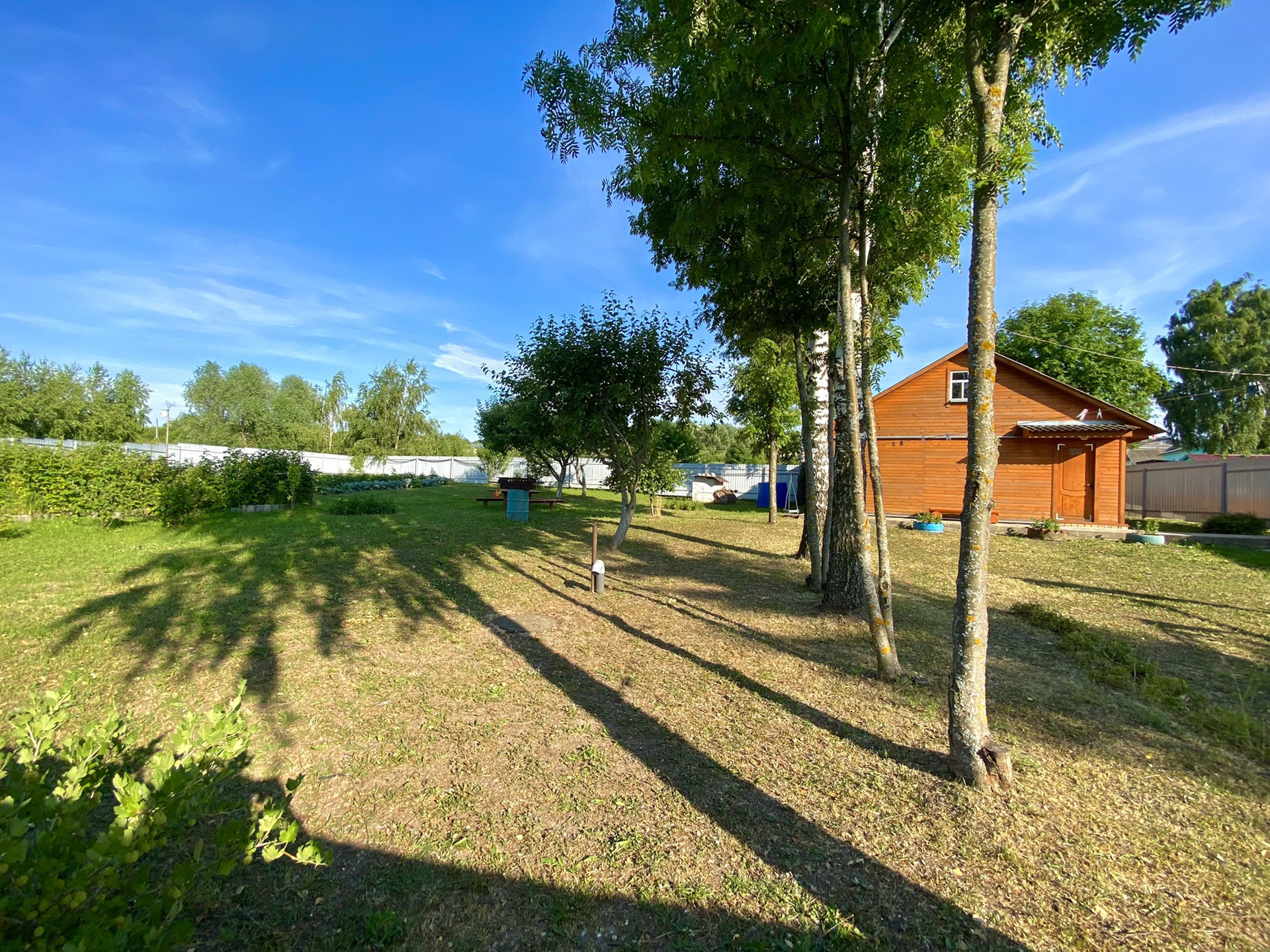 - Земельный облагороженный участок, прилегающий к бане, где растут: малина, яблони, груши, смородина, вишня, крыжовник, виноград, клубника и т. д. Участок оборудован большими столами, лавочками, мангалом для уютных посиделок на природе, а также прекрасной детской площадкой для детишек.