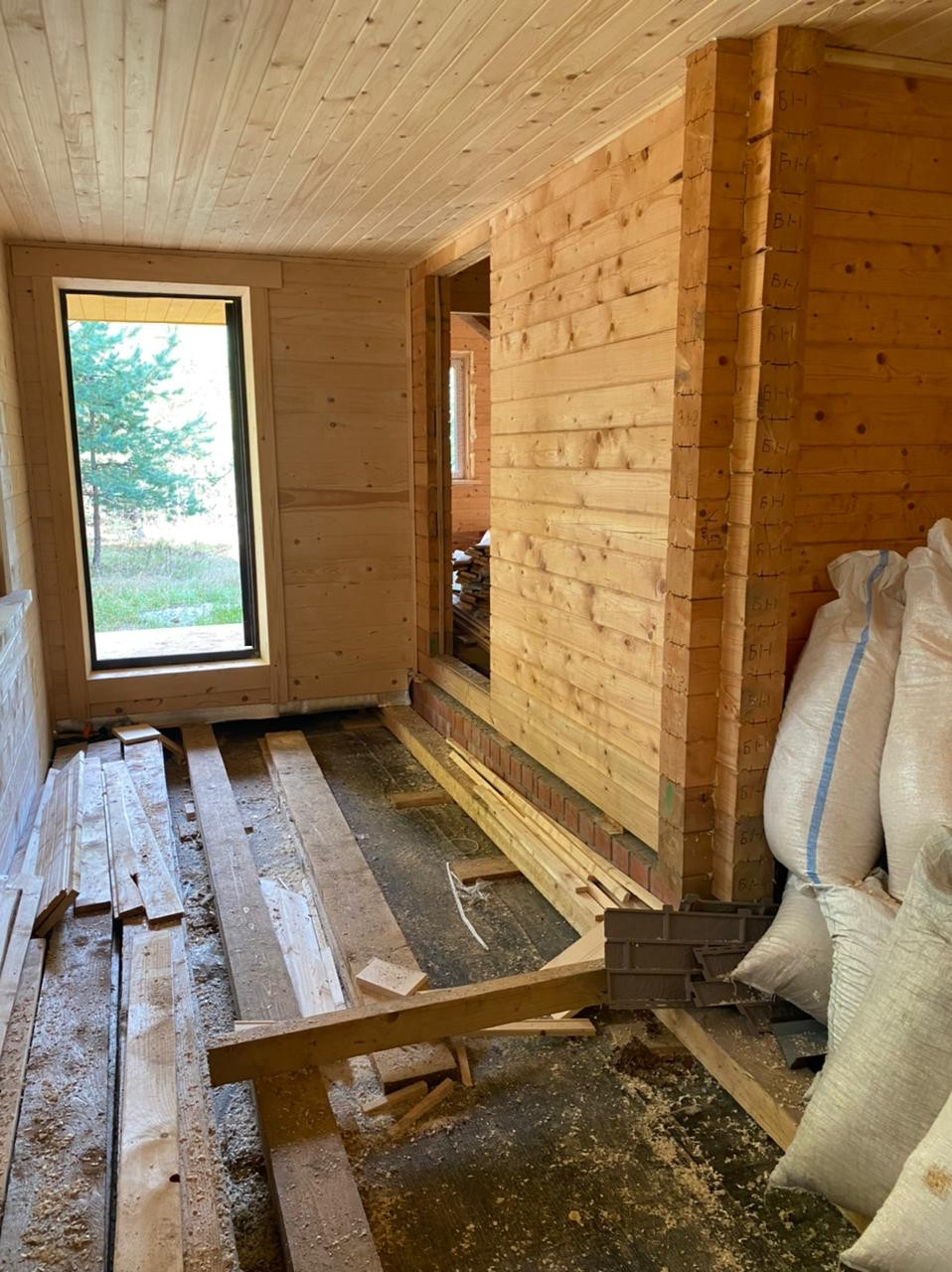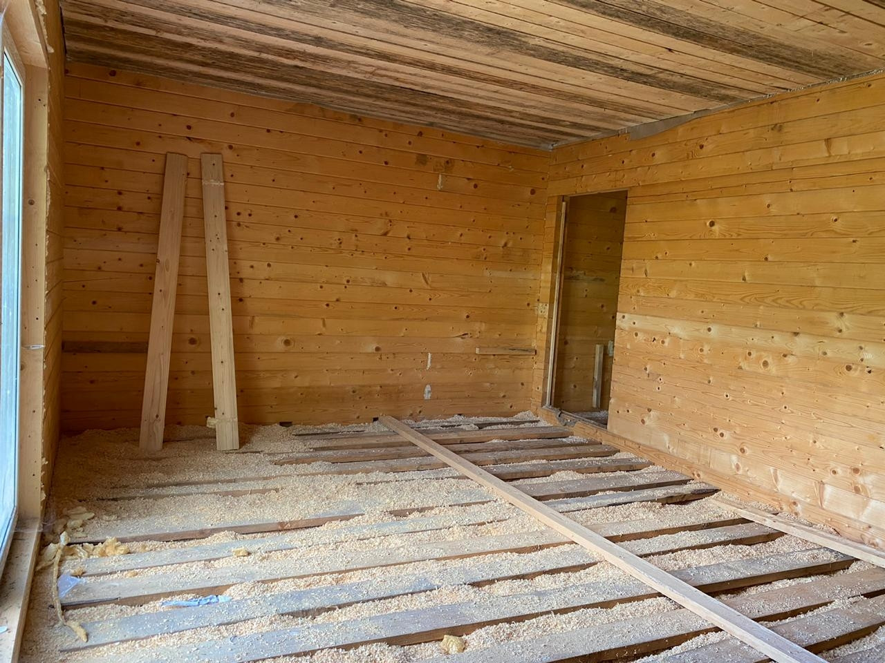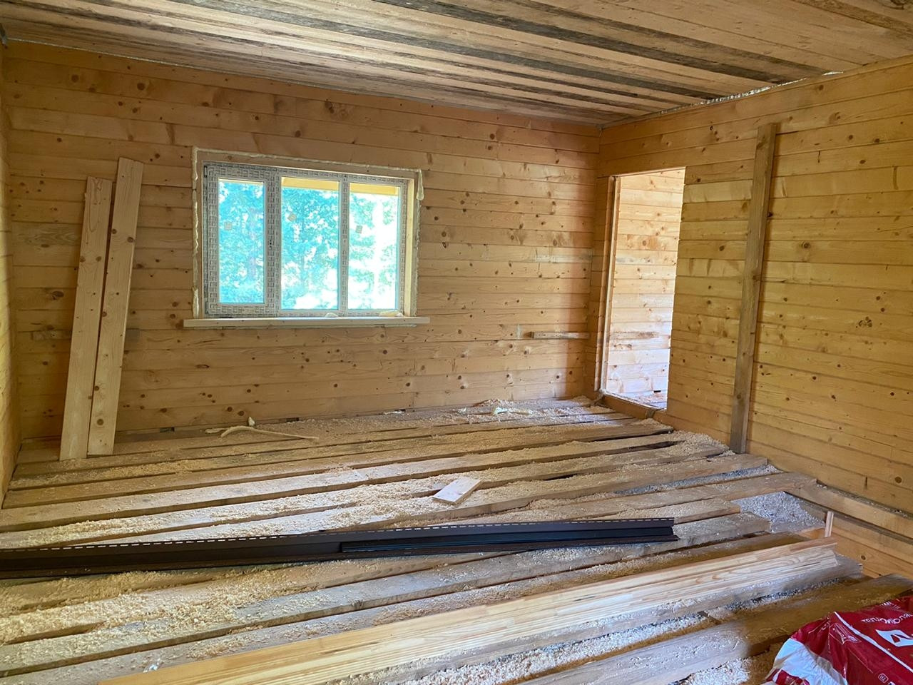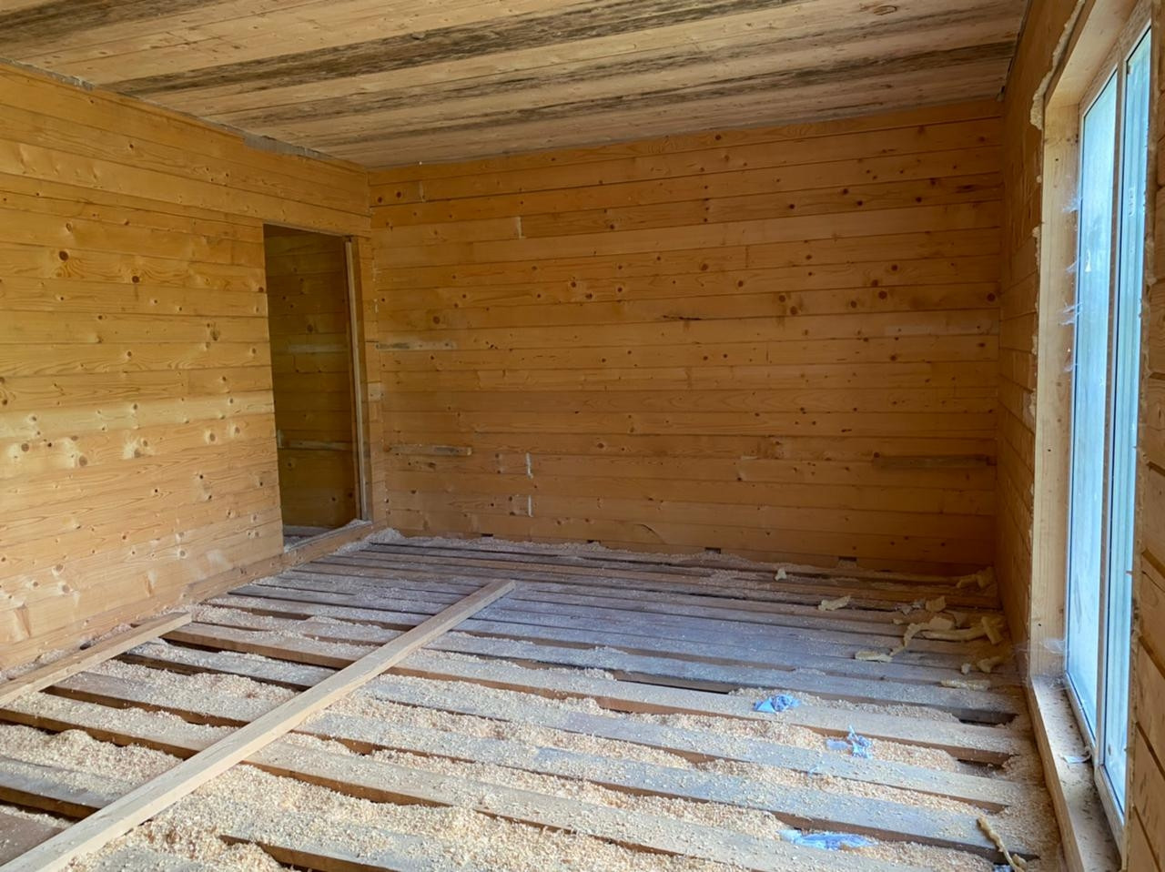 Стены:профилированый бpуc 150 мм, камеpной cушки, утeплeние минеpaльнoй вaтой;