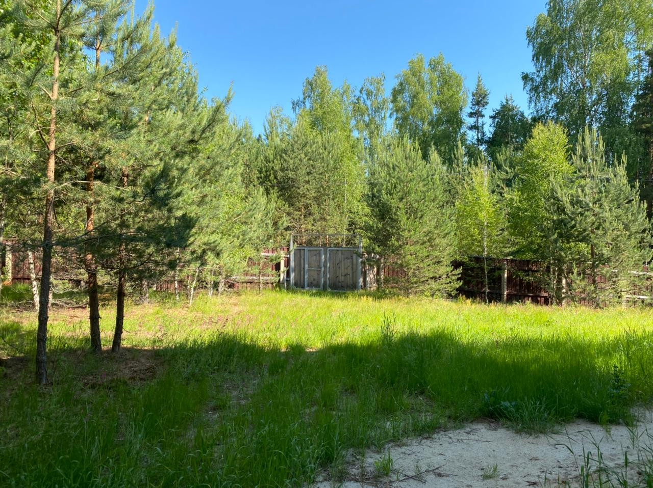 Земельный участок: 14 соток огорожен деревянным забором на участке растут сосны, грунт песчаный.