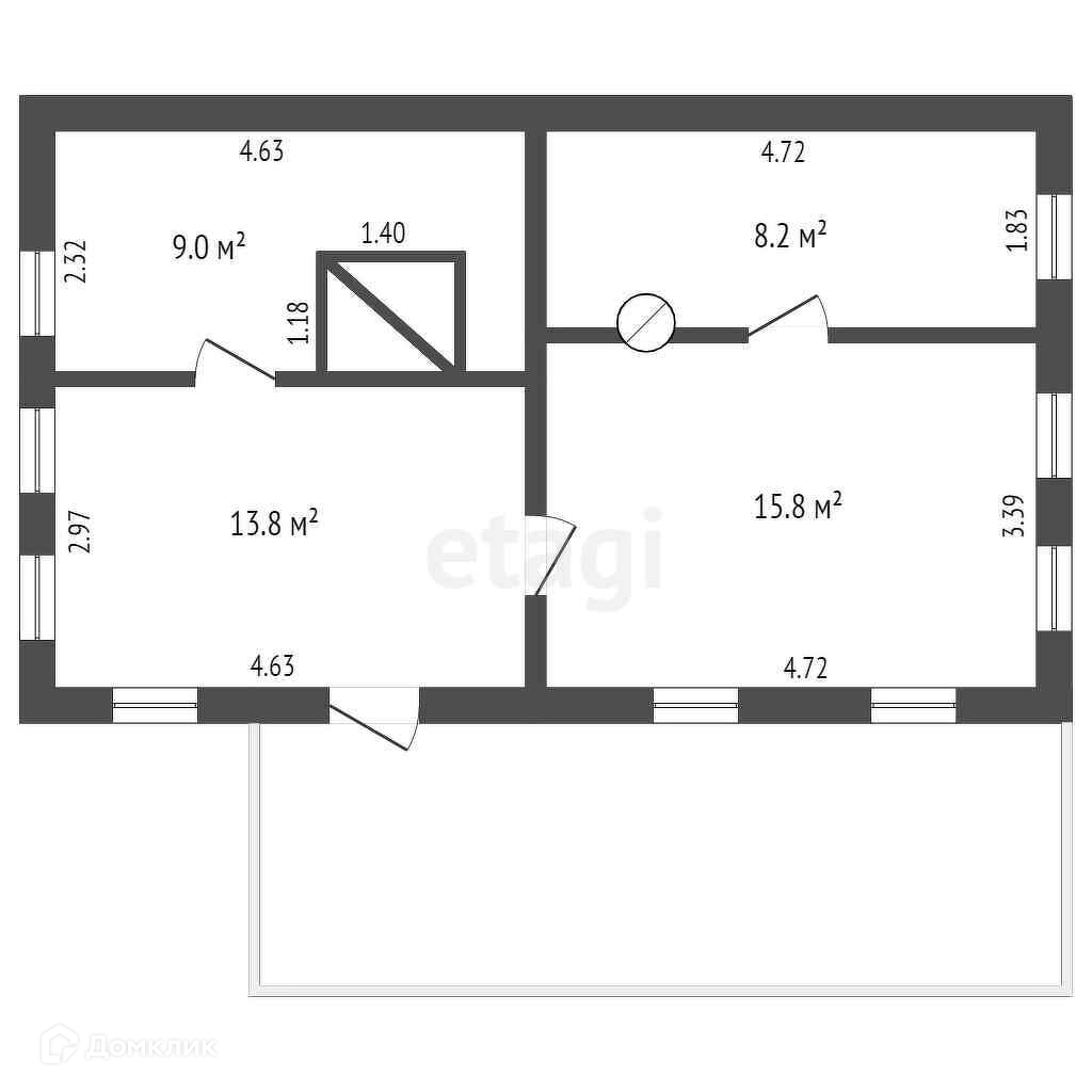 Общая площадь 46.8 м2