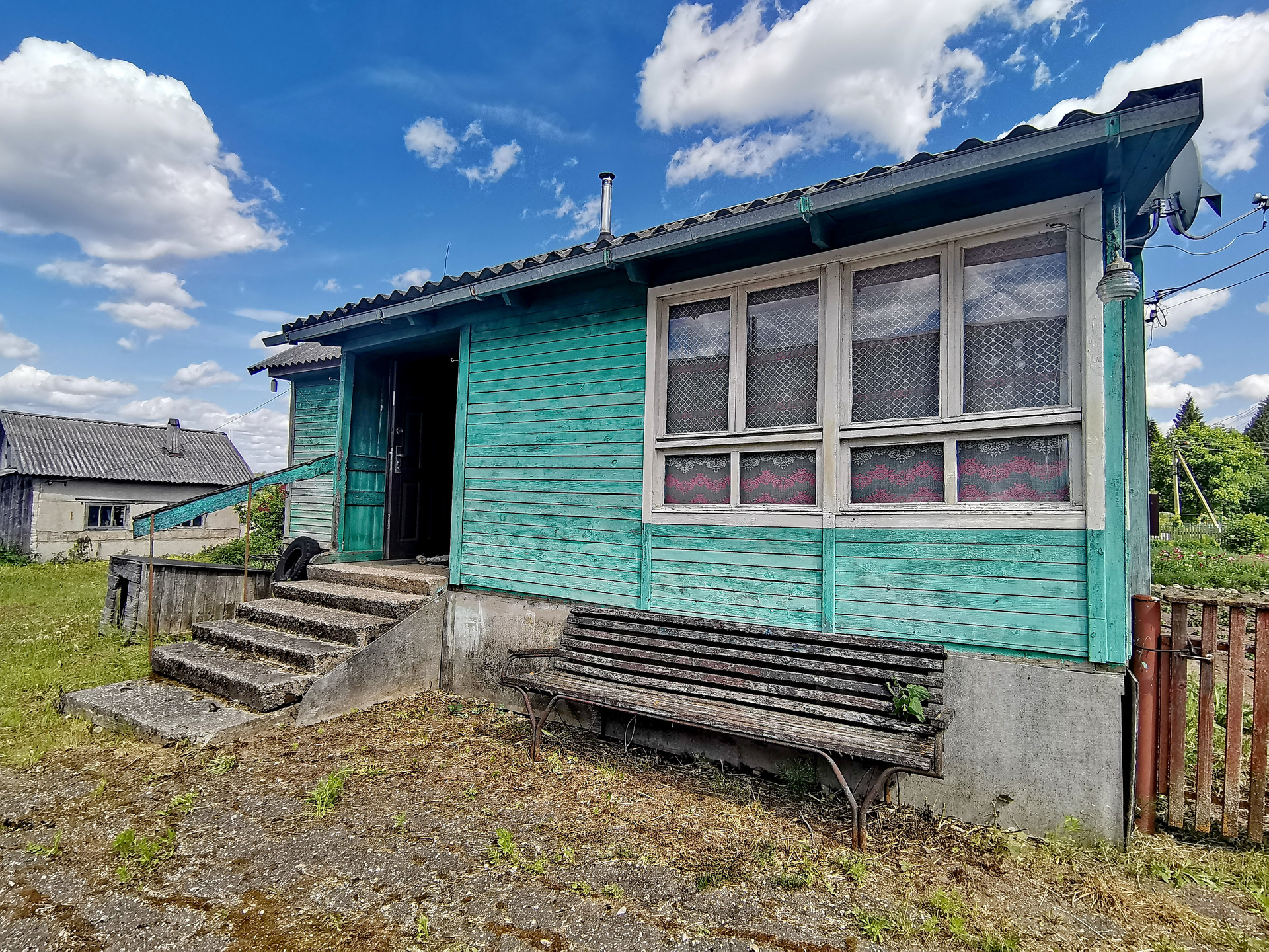 Три изолированные комнаты, 17.9м., 12.2 и 9.8м., кухня - 12.2 м., газ - баллонный. Можно установить электрическую плиту. Санузел раздельный, бойлер. Кладовка и встроенные шкафы. Веранда 9 метров.