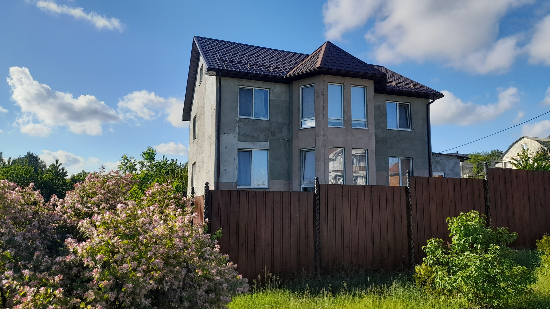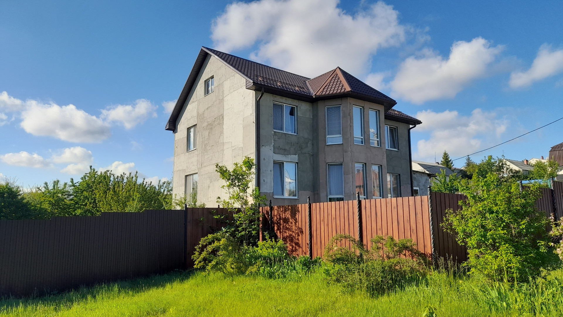 Дом строил сам с нуля, отделка внутри 100%, снаружи утеплен+черновая штукатурка. участок увеличенный и оформленный 1616 м2, огорожен, угловой. Соседи хорошие. Кругом асфальт, в доме все удобства. Планы этажей на фото. на участке фундамент и цоколь под гараж, баню, погреб. стоит два вагончика строительных. Сад 8 лет.