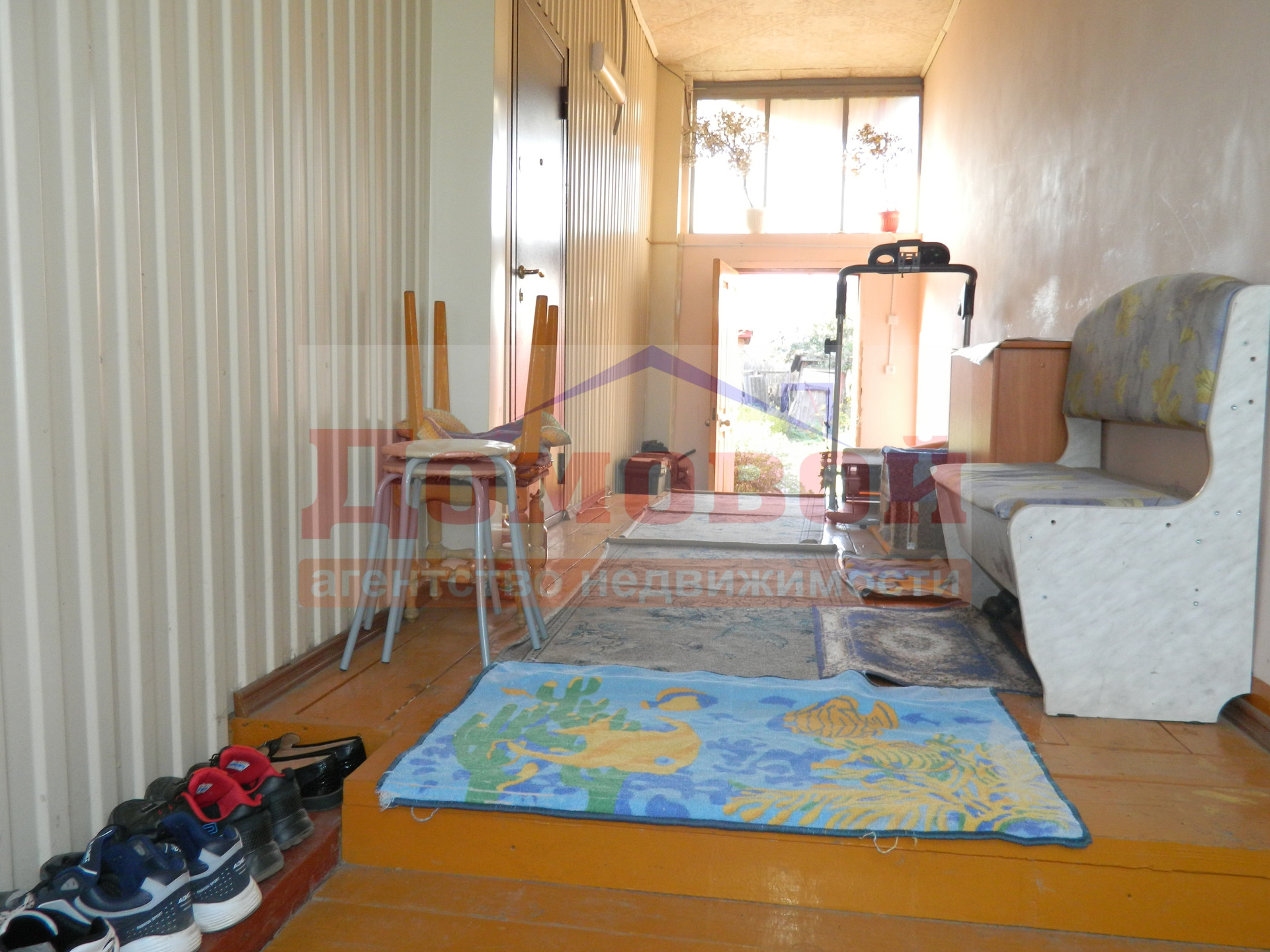 Кирпичный пристрой в виде сквозного коридора,гараж,летняя веранда с погребом  ,баня. Участок 5 соток.