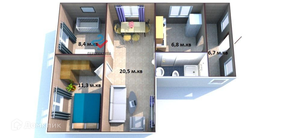 Общая площадь 57.2 м2