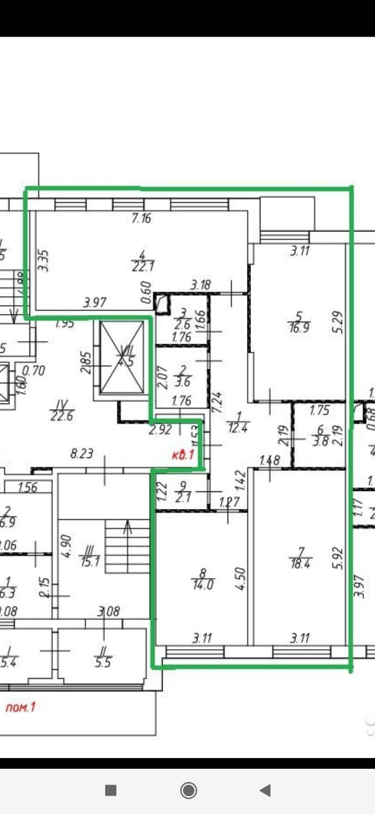 Площадь кухни 22.1 м2