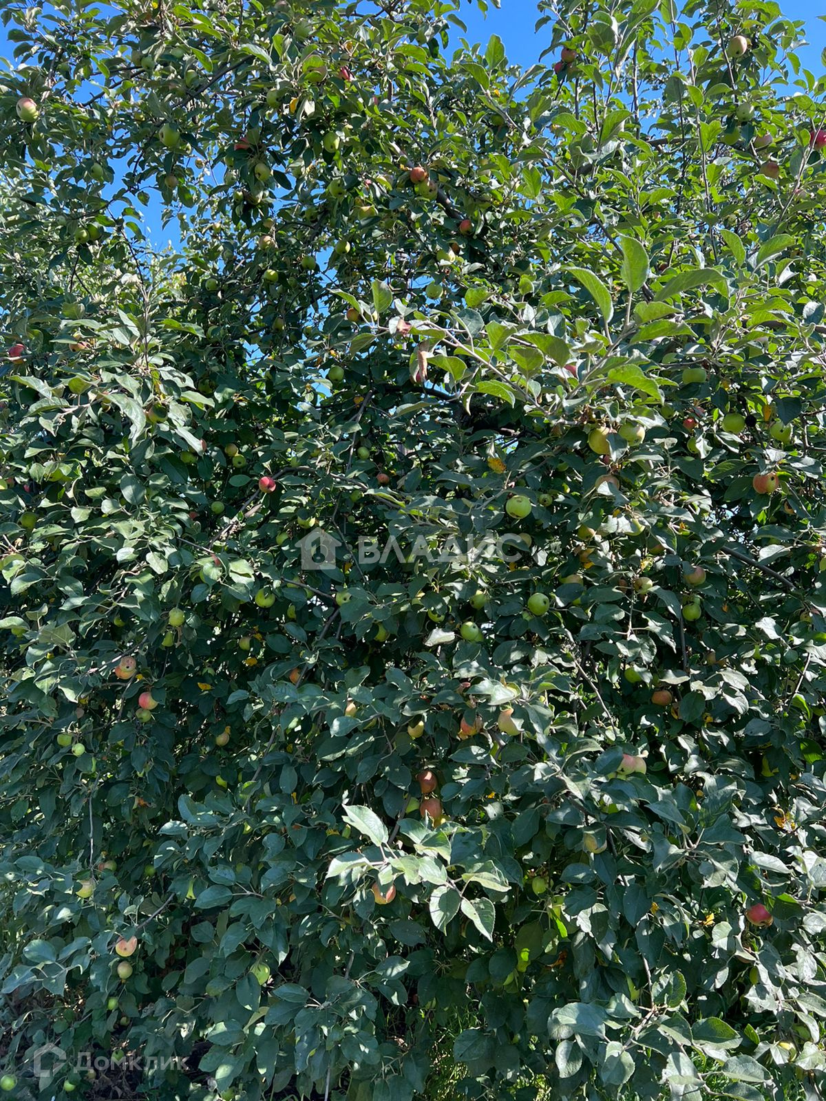 Большой огороженный сад с плодоносящими фруктовыми деревьями, малиной, крыжовником и смородиной.