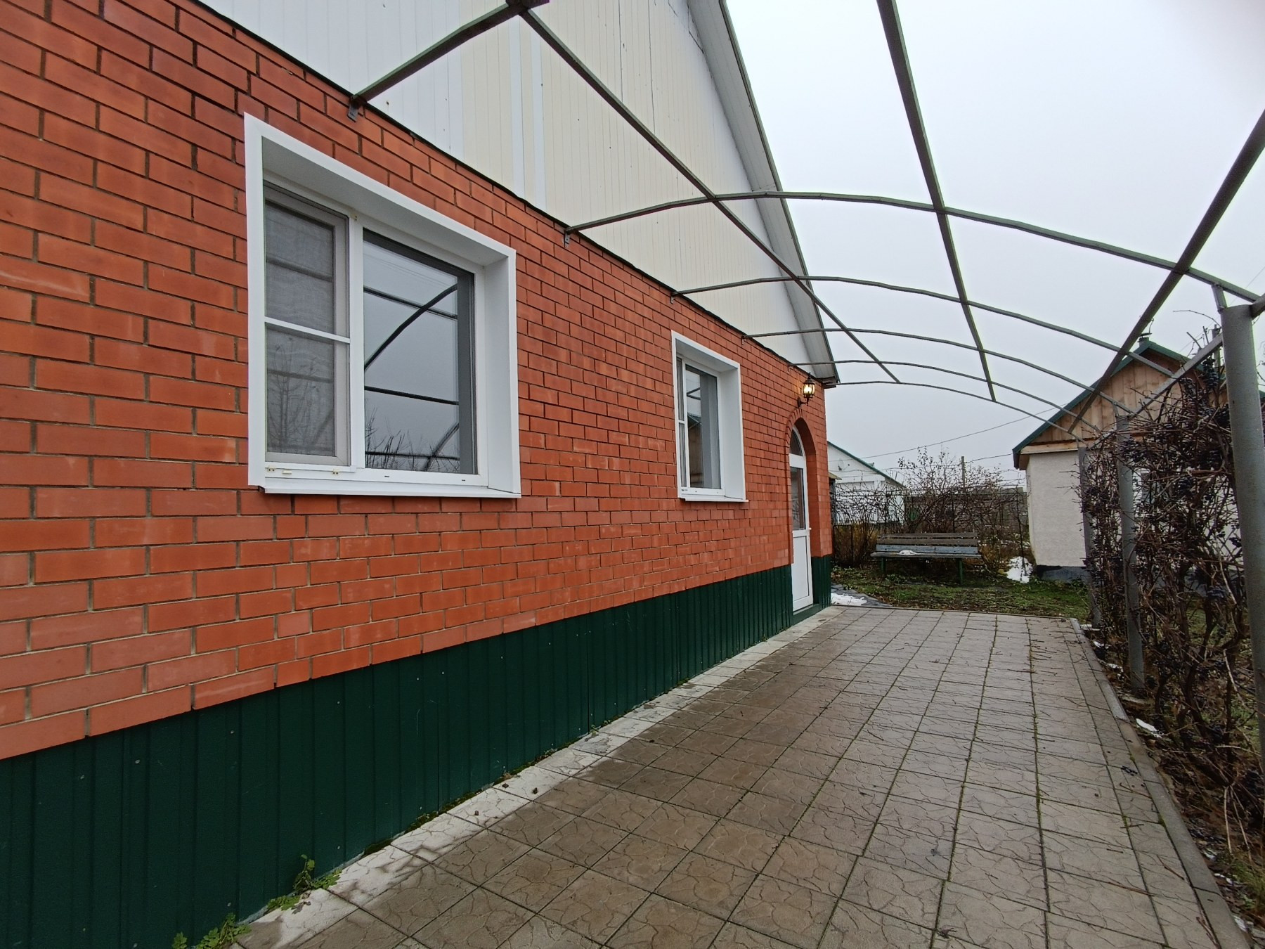 Дом построен в 2011 году, все коммуникации центральные, заведены в дом. Общая площадь 60 кв.м., три изолированных просторных жилых комнаты (8,5+11,6+12,9) кв.м., гостинная 16 кв.м., кухня 4 кв.м. Есть возможность обустройства второго этажа и увеличения жилой площади. Санузел находится в доме, отделан кафелем современного образца. В доме сделан современный качественный ремонт, на полу постелен линолеум, установлены новые пластиковые стеклопакеты, потолки натяжные. На земельном участке площадью 30 соток построены 2 теплицы и посажены многочисленные плодовые насаждения. На участке построена баня и просторный гараж, вся территория огорожена забором. Доброжелательные соседи.