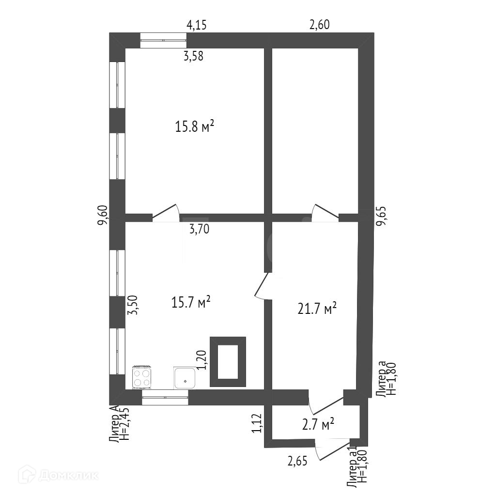 Общая площадь 31.5 м2