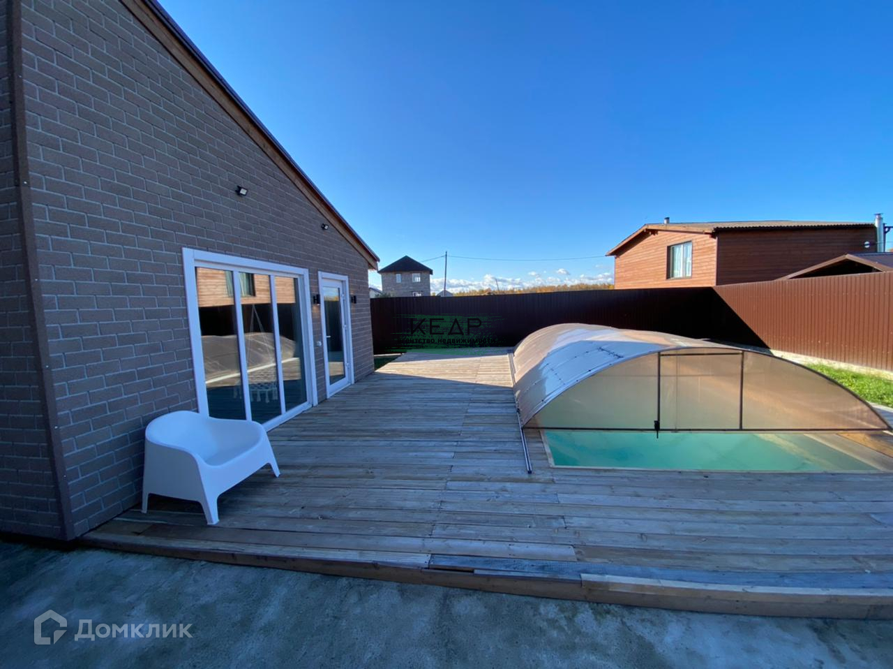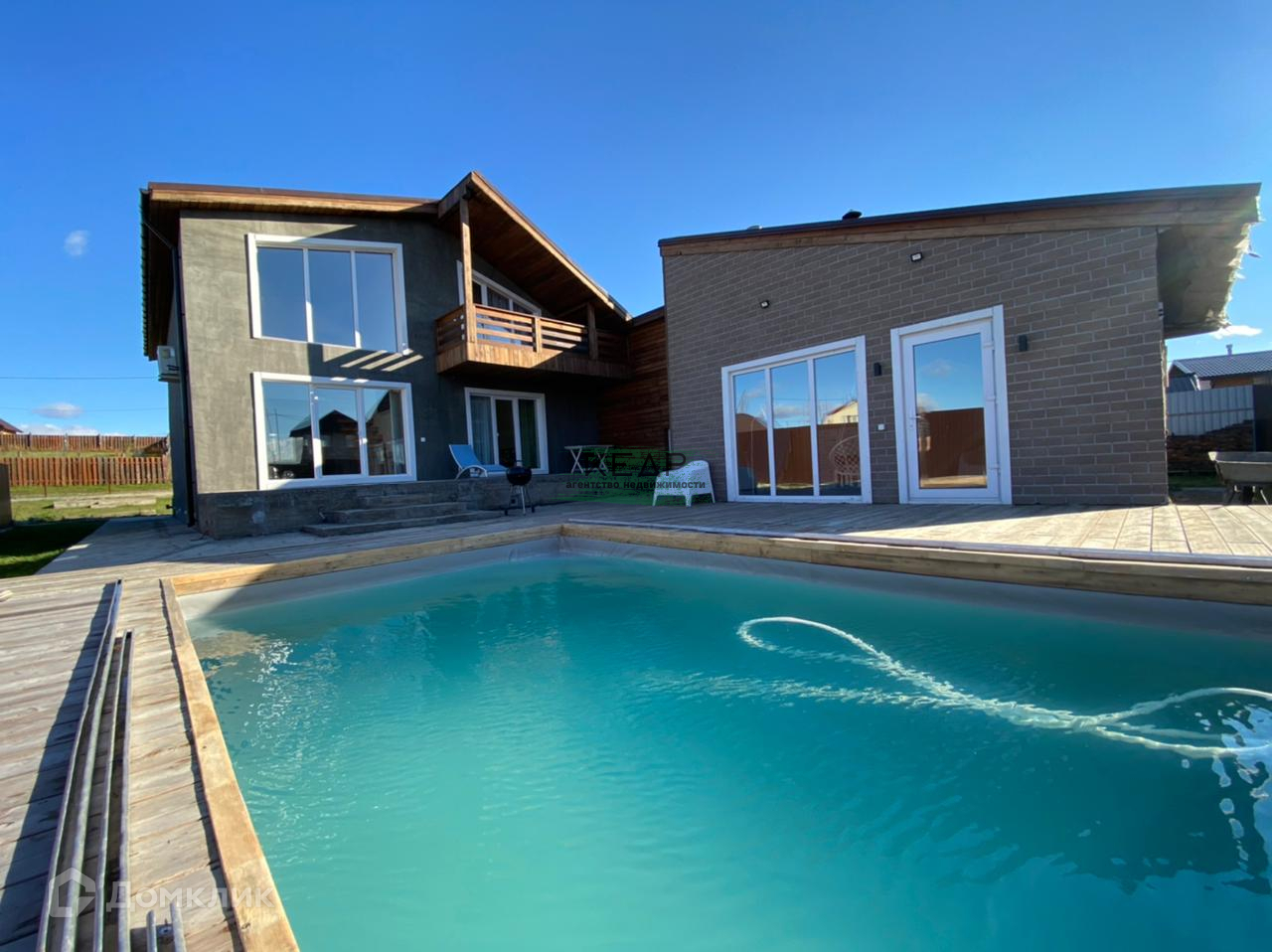 Коммуникации: Система отопления от твердотопливного автоматического котла, водоснабжение из скажины через фильтрацию, два септика и ливневая канализация). Бассейн объемом 50 куб.м., с системой самоочистки и подогрева. Автоматическое внешнее освещение дома.
