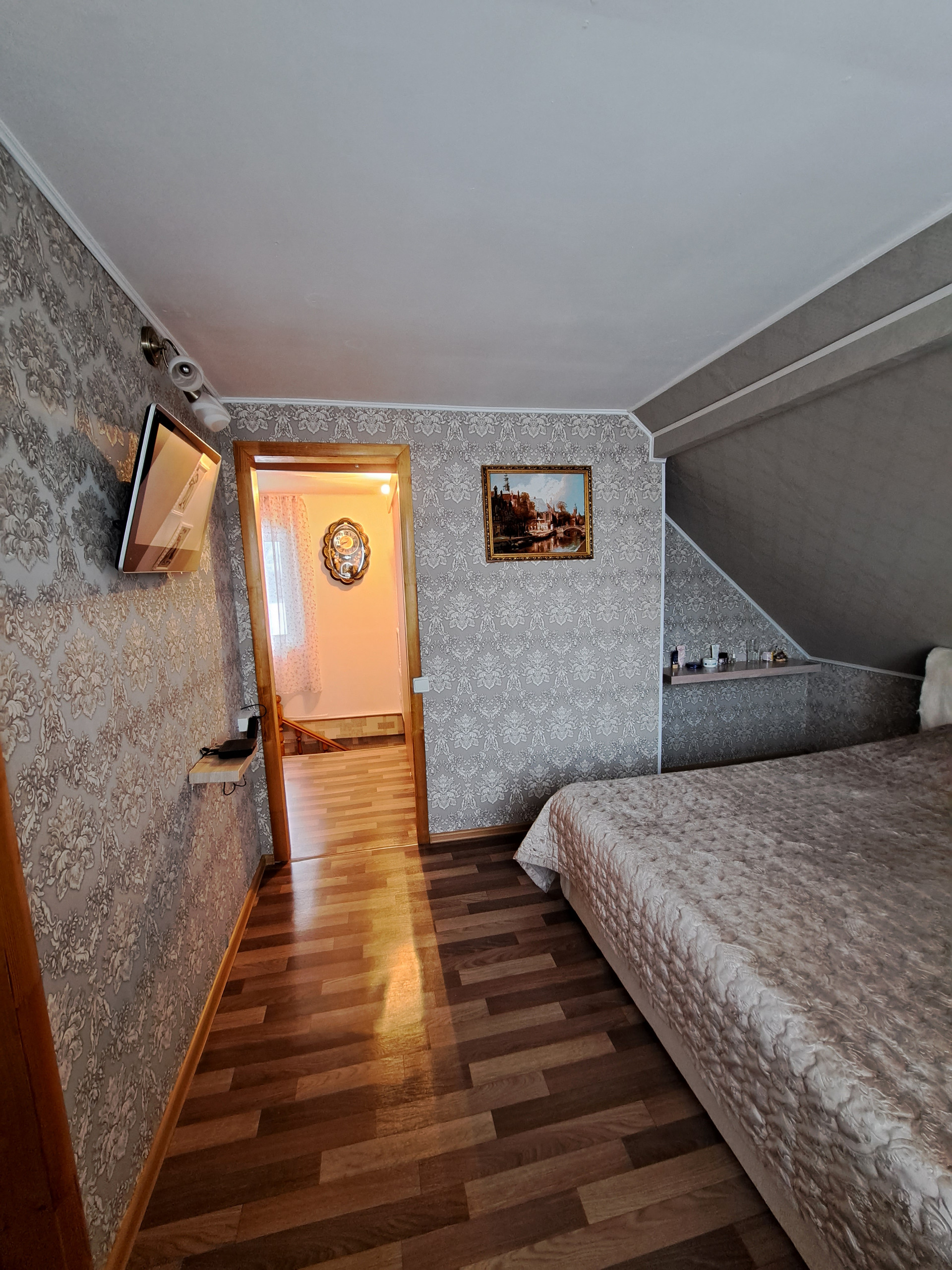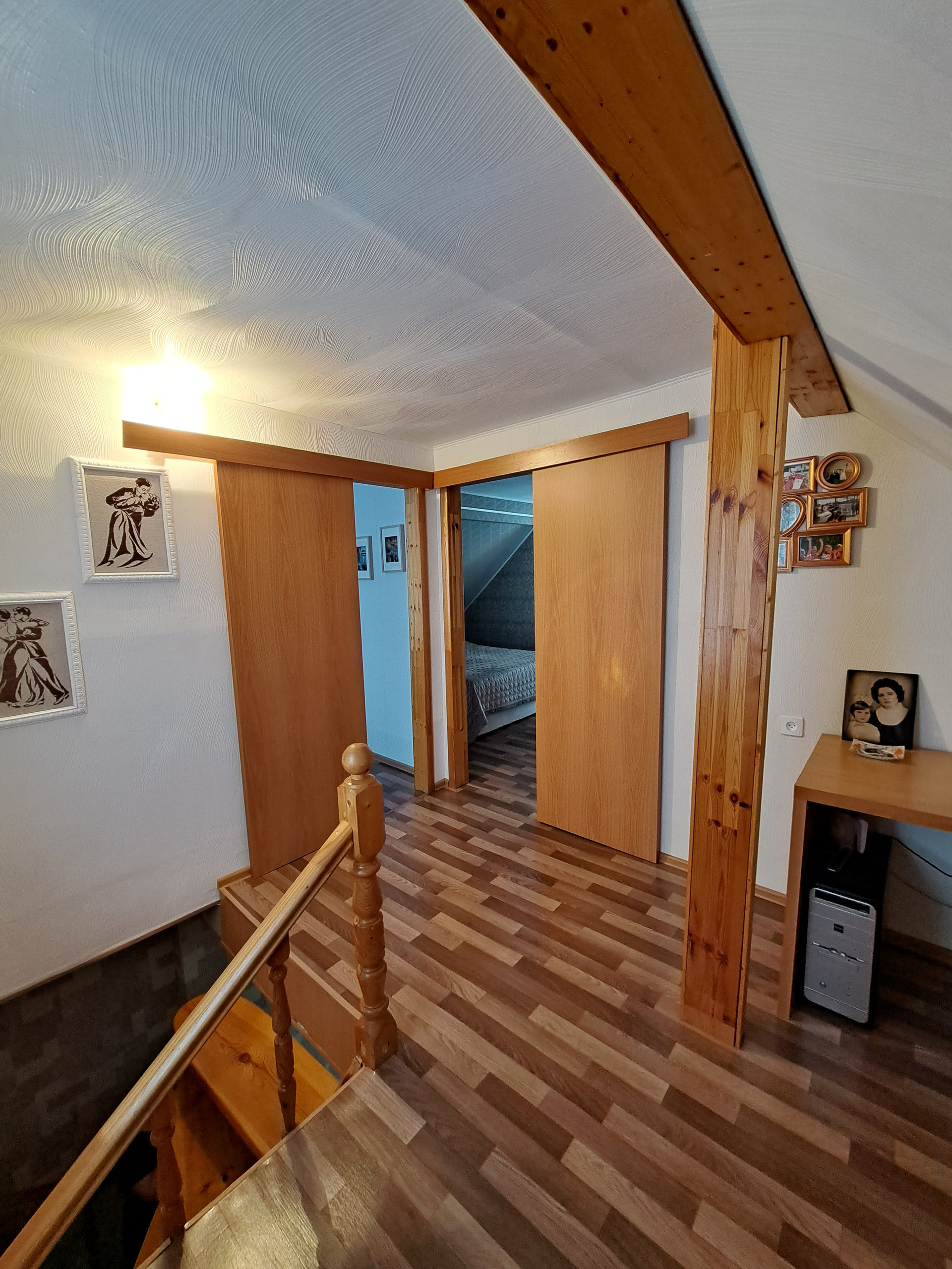 Мансарда: спальная комната с выходом на балкон- 11,7м2, гардеробная-гладильная комната – 6,8 м2, комната отдыха, холл с выделенной зоной под кабинет -8,9 м2! Дом отапливается с помощью автоматического твердотопливного котла. Вся мебель и бытовая техника остаётся в доме по договорённости!