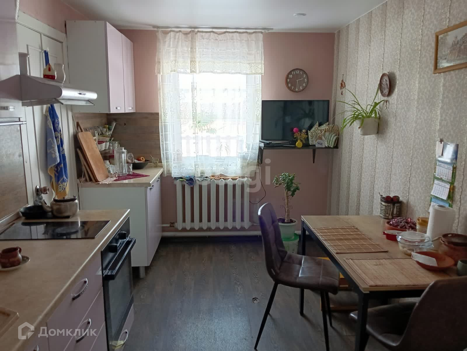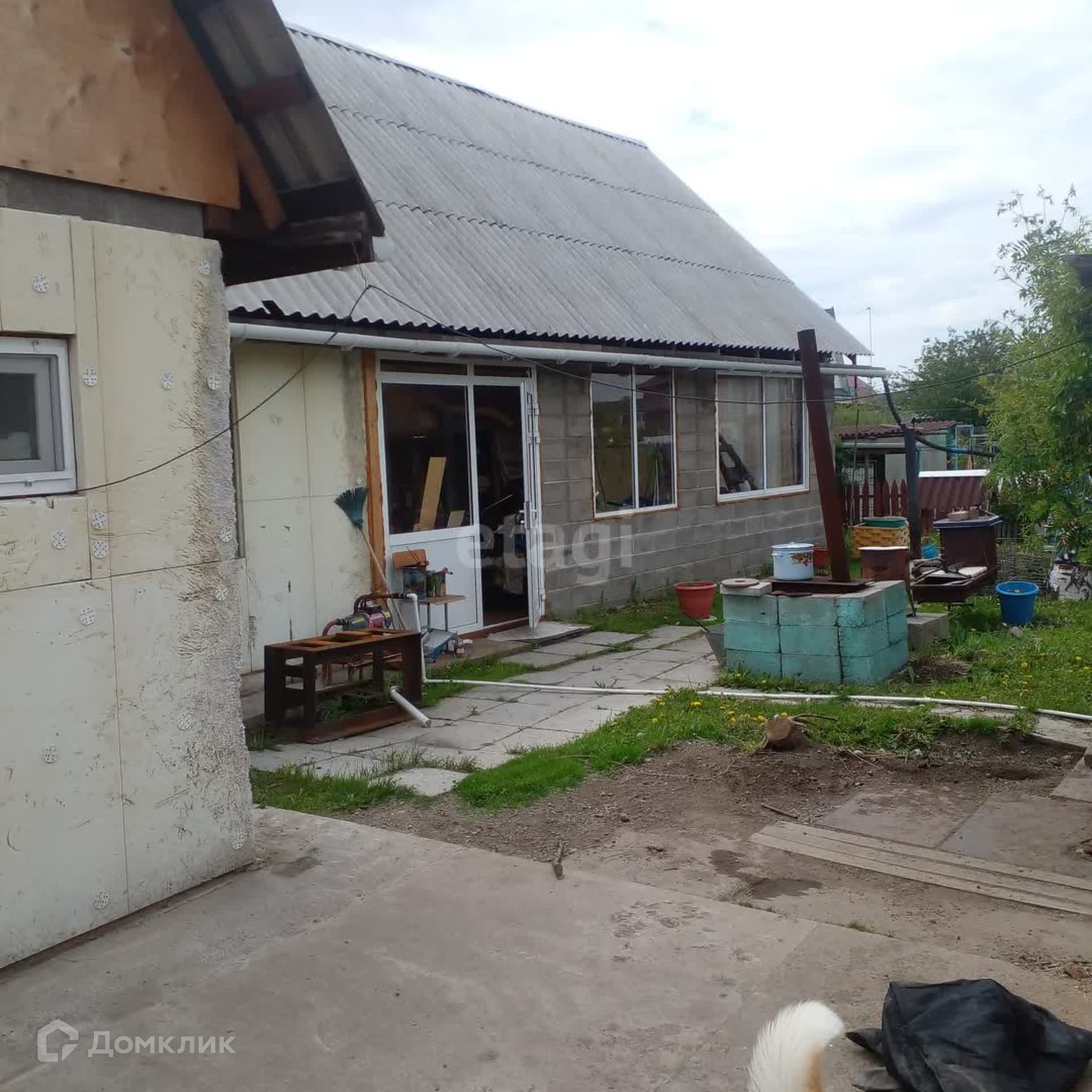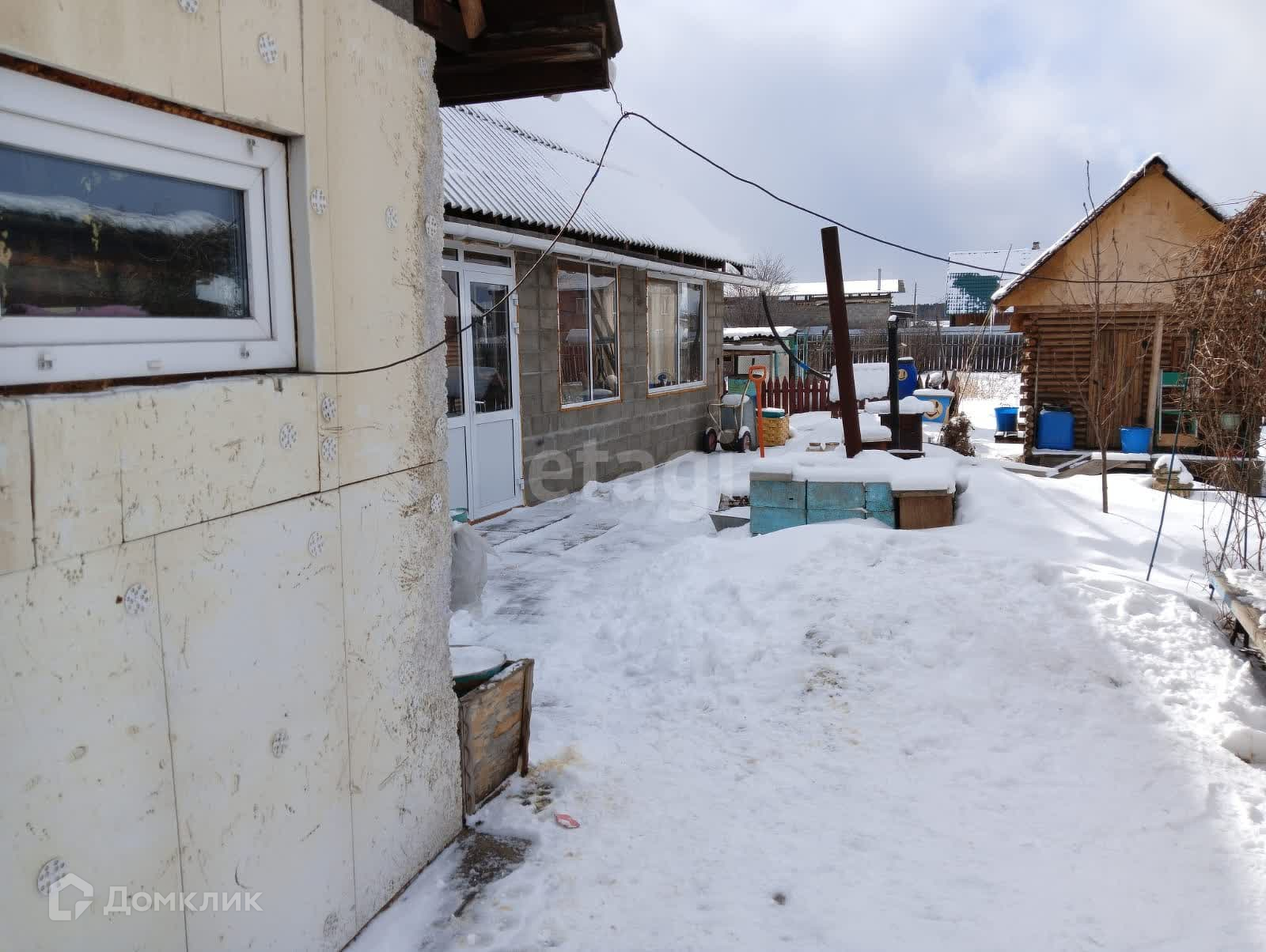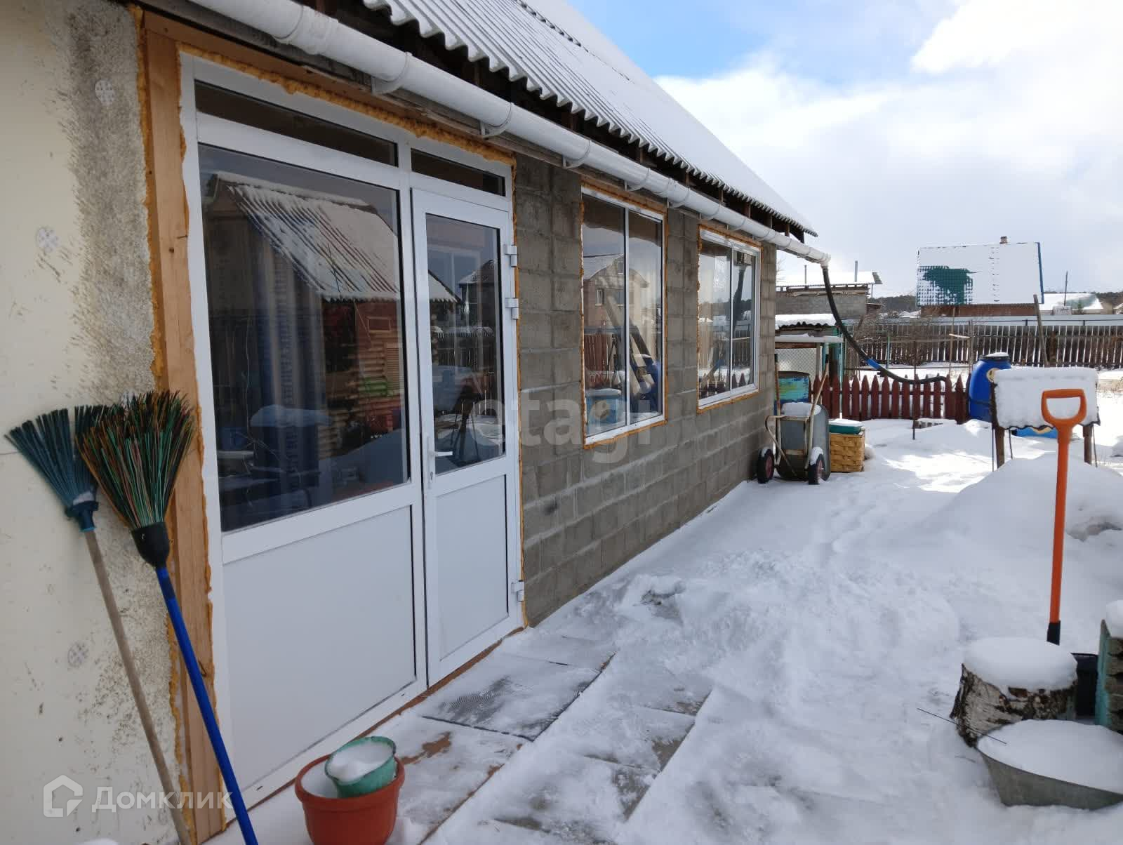 Дом из бревна, пристрой из шлакоблоков, утеплен и обшит сайдингом. Внутри требуется ремонт, везде окна ПВХ. Свет заведен в дом, вода - центральная, отопление - твердотопливный котел, канализация - два септика.