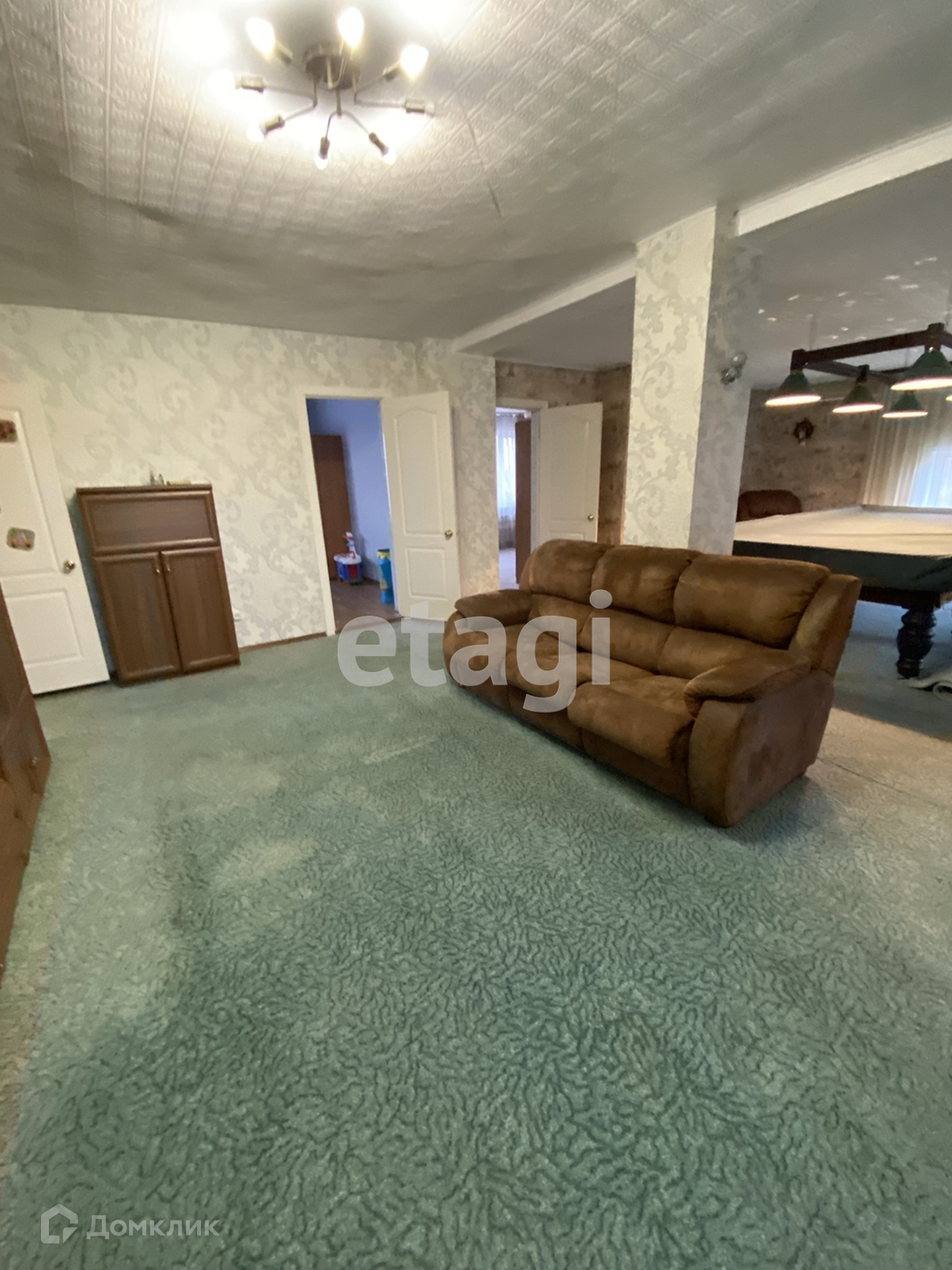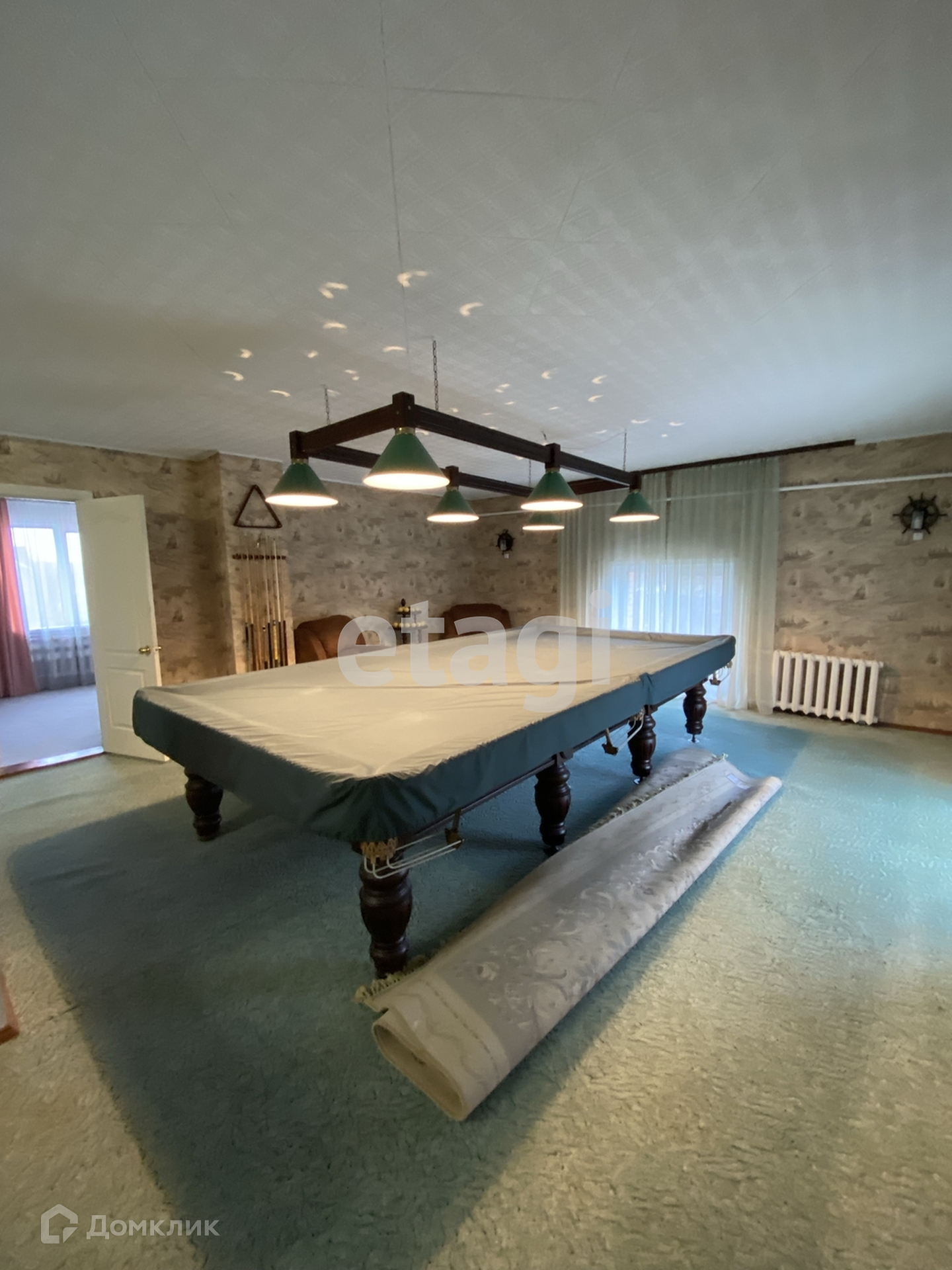 В главном доме 8 комнат, четыре спальни,кабинет, зимний сад, две лоджии, камин, бильярдная комната. Туалет на каждом этаже.