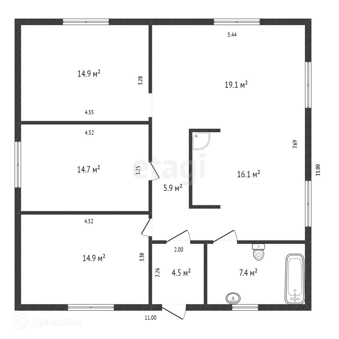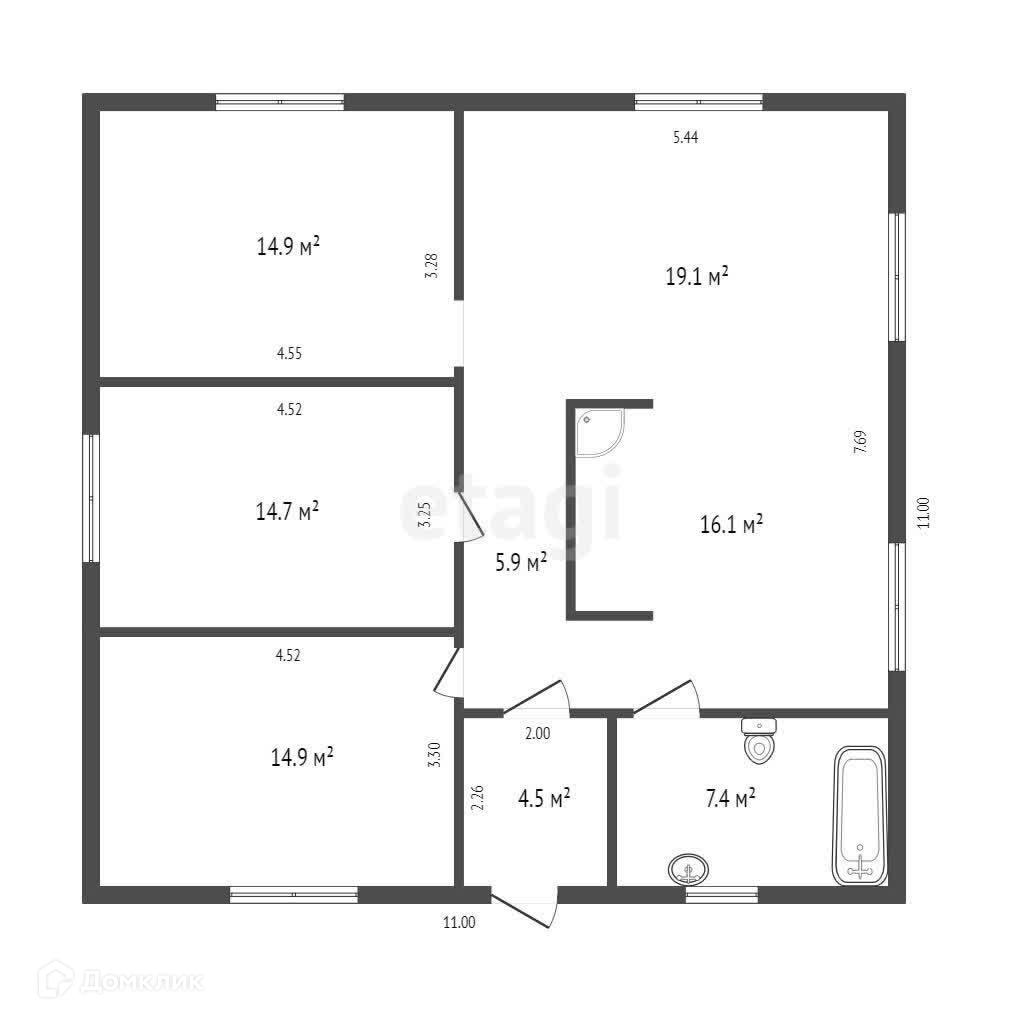 1-этажный дом, 102 м2, на продажу в селе Есаулово, Клубная улица