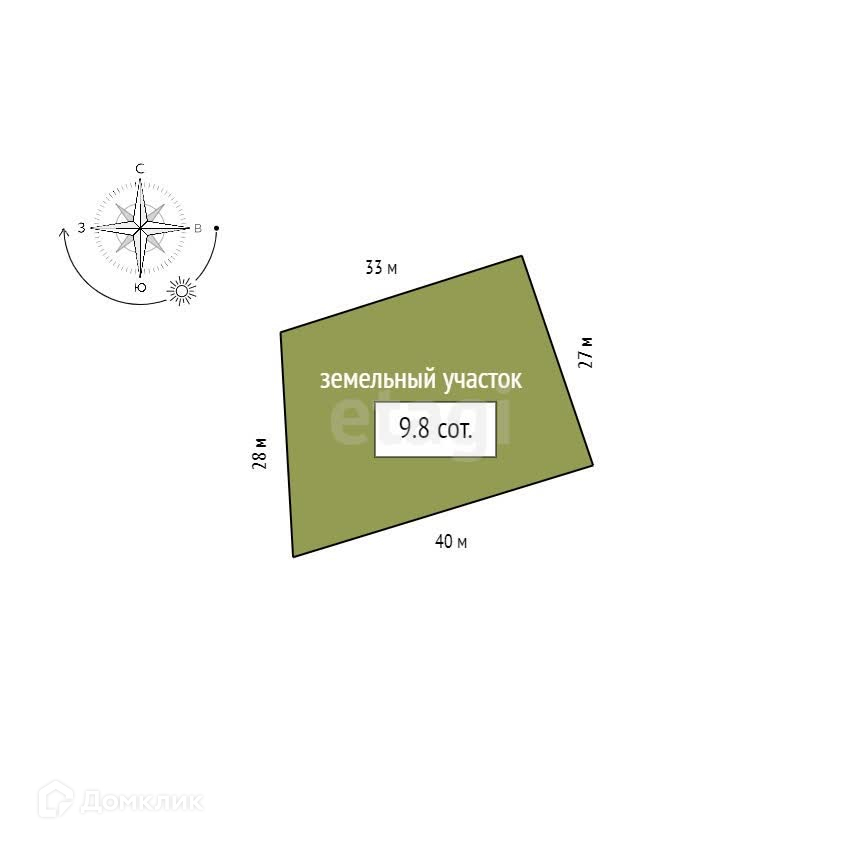 Площадь участка 9.8 сот.