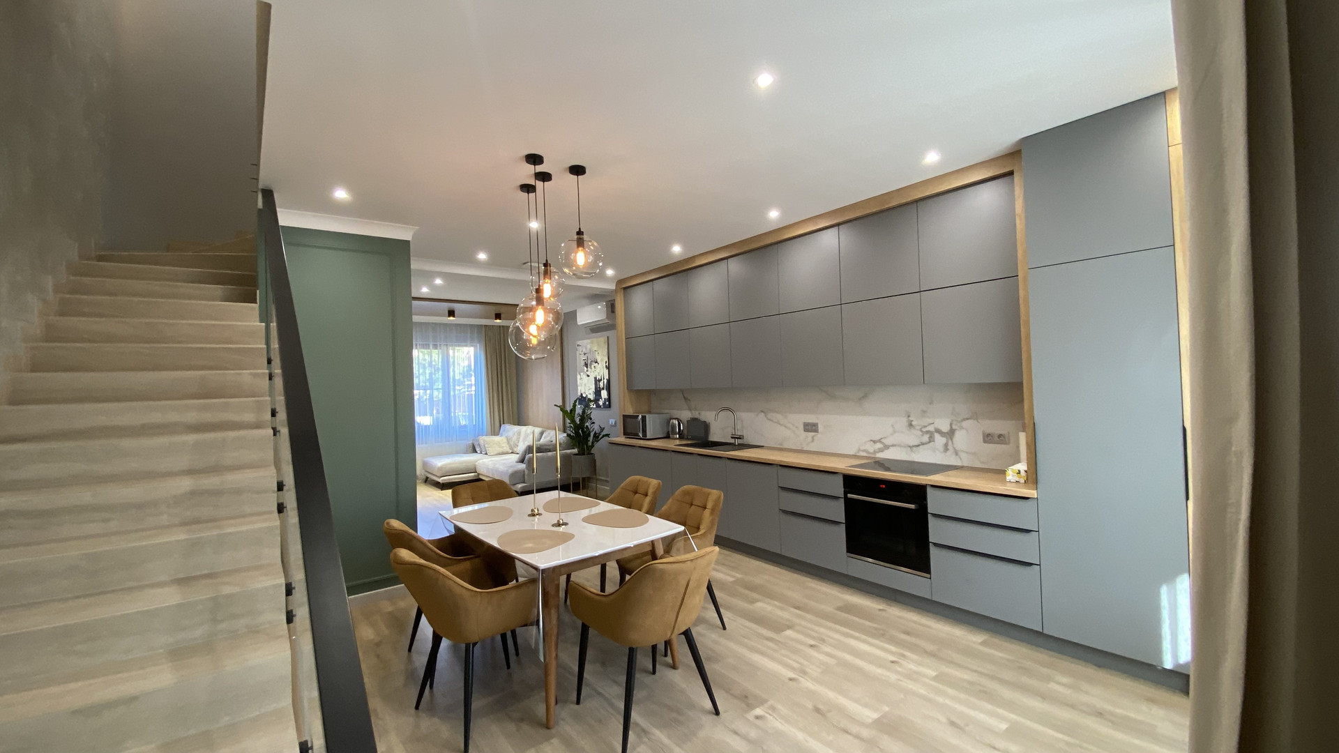 Абсолютно новый дом с премиум ремонтом, расположился напротив Marriott отеля на центральной, но тихой широкой улице с шикарным видом на заснеженные вершины Кавказских гор.