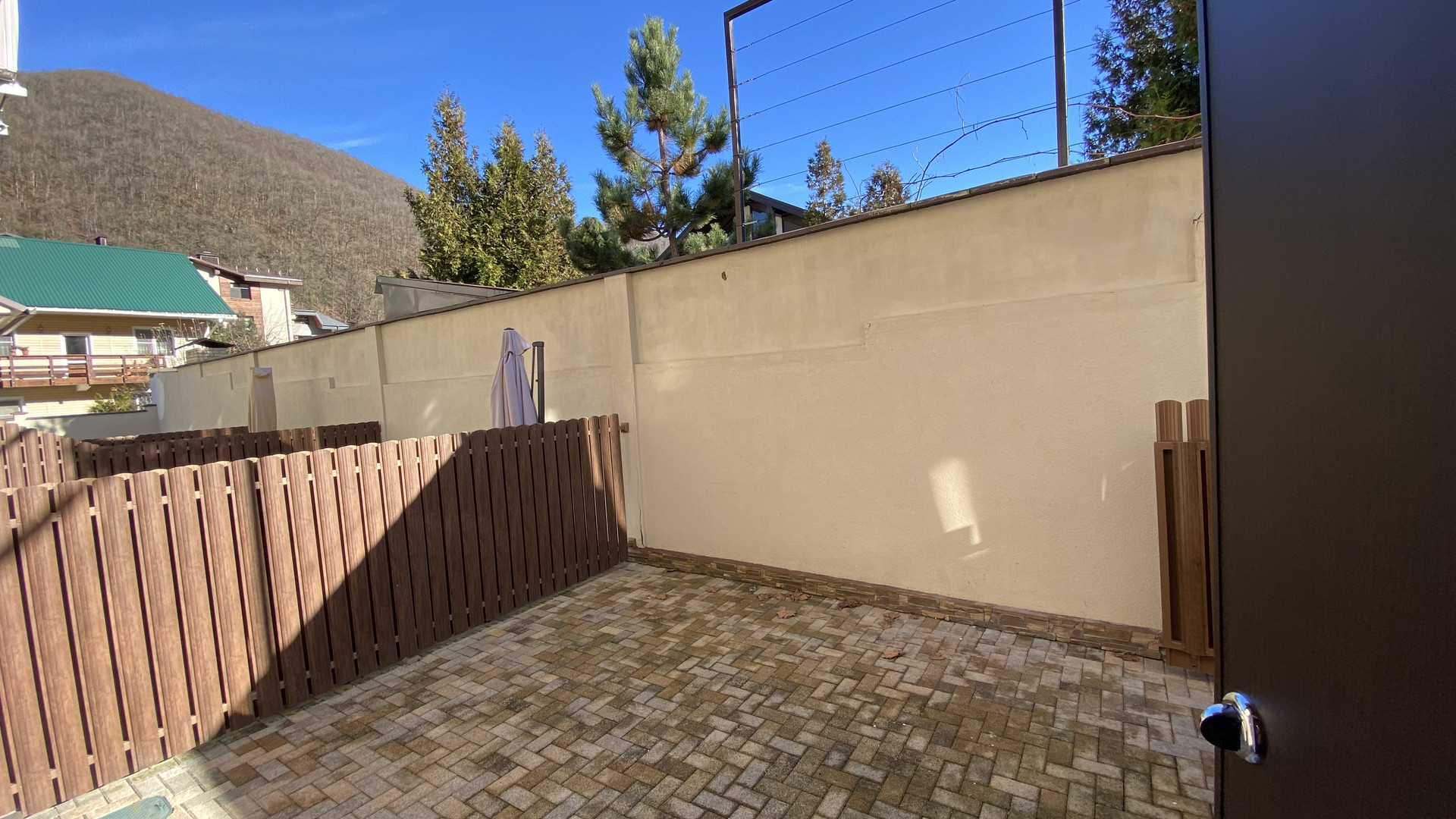 Перед таунхаусом имеется огороженная парковка на 1 машиноместо (установлены автоматические ворота и калитка).