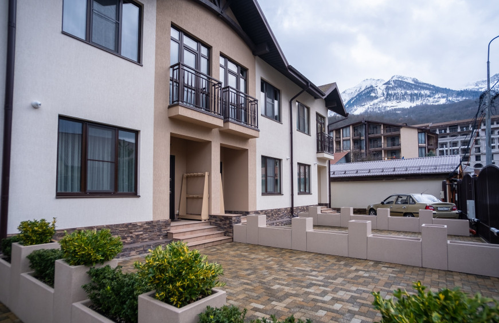 2х этажный таун хаус расположен в самом центре Красной Поляны (с. Эсто-Садок) в двух минутах от подъёмников, Казино, торгового центра Горки молл, ресторанов, музея, парка,  в непосредственной близости от всей курортной инфраструктуры, всё в пешей доступности!