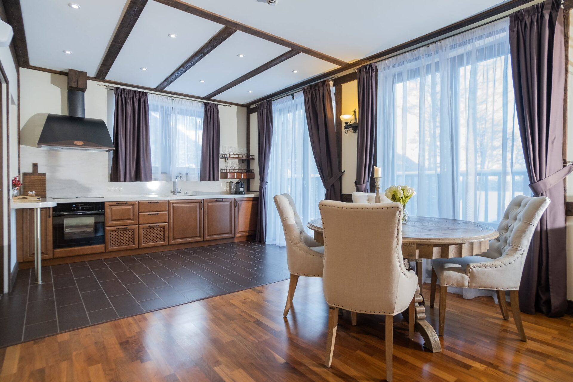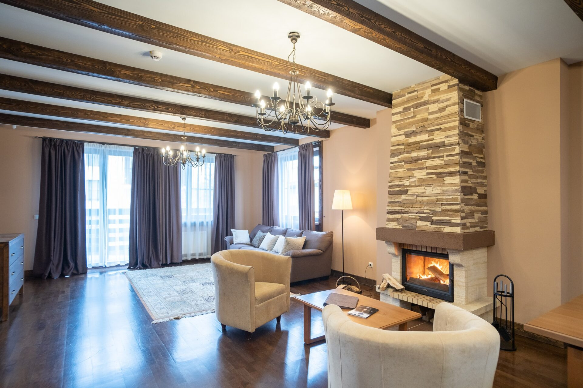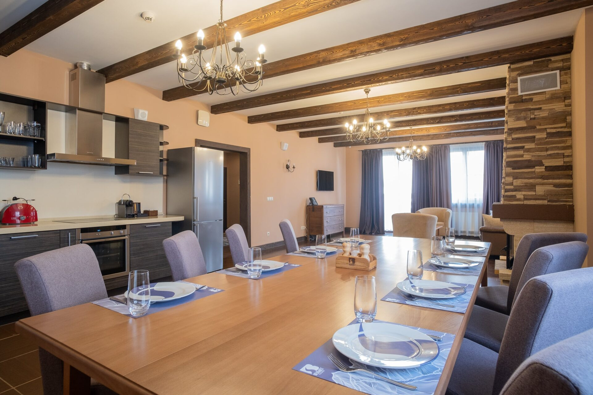 2-х этажный дом расположился в пешей доступности от подъемников и прочей инфраструктуры горнолыжного курорта. Днем можно кататься на лучших трассах курорта, а вечером проводить время с семьей и друзьями у камина.