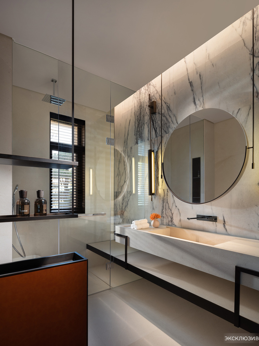 Дом площадью 280 м2, расположен на территории 8сот. которая находится в собственности, выполнено современное ландшафтное озеленение, есть бассейн с подогревом. Интерьером занимался известный международный дизайнер, использовалось много эксклюзивных элементов.