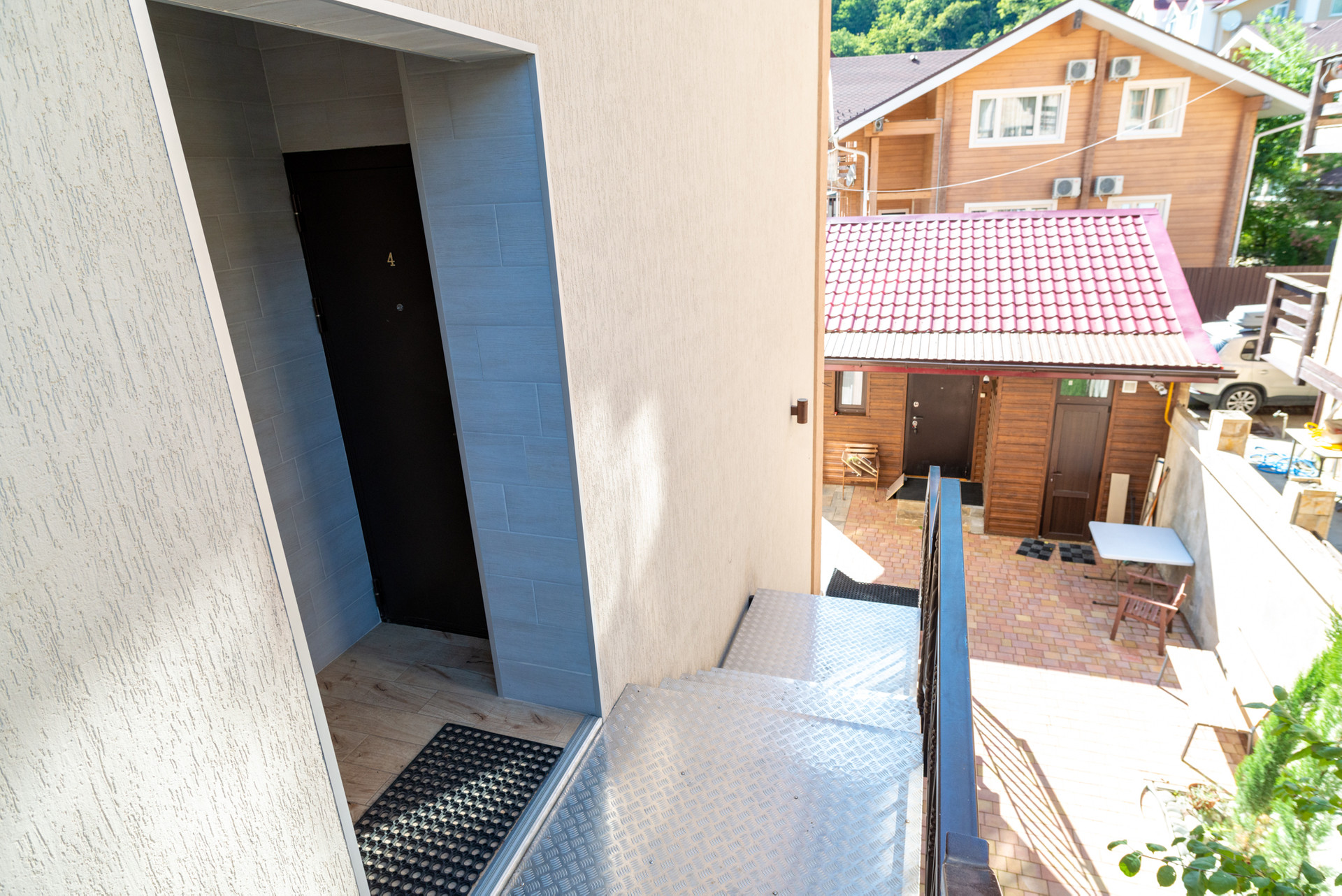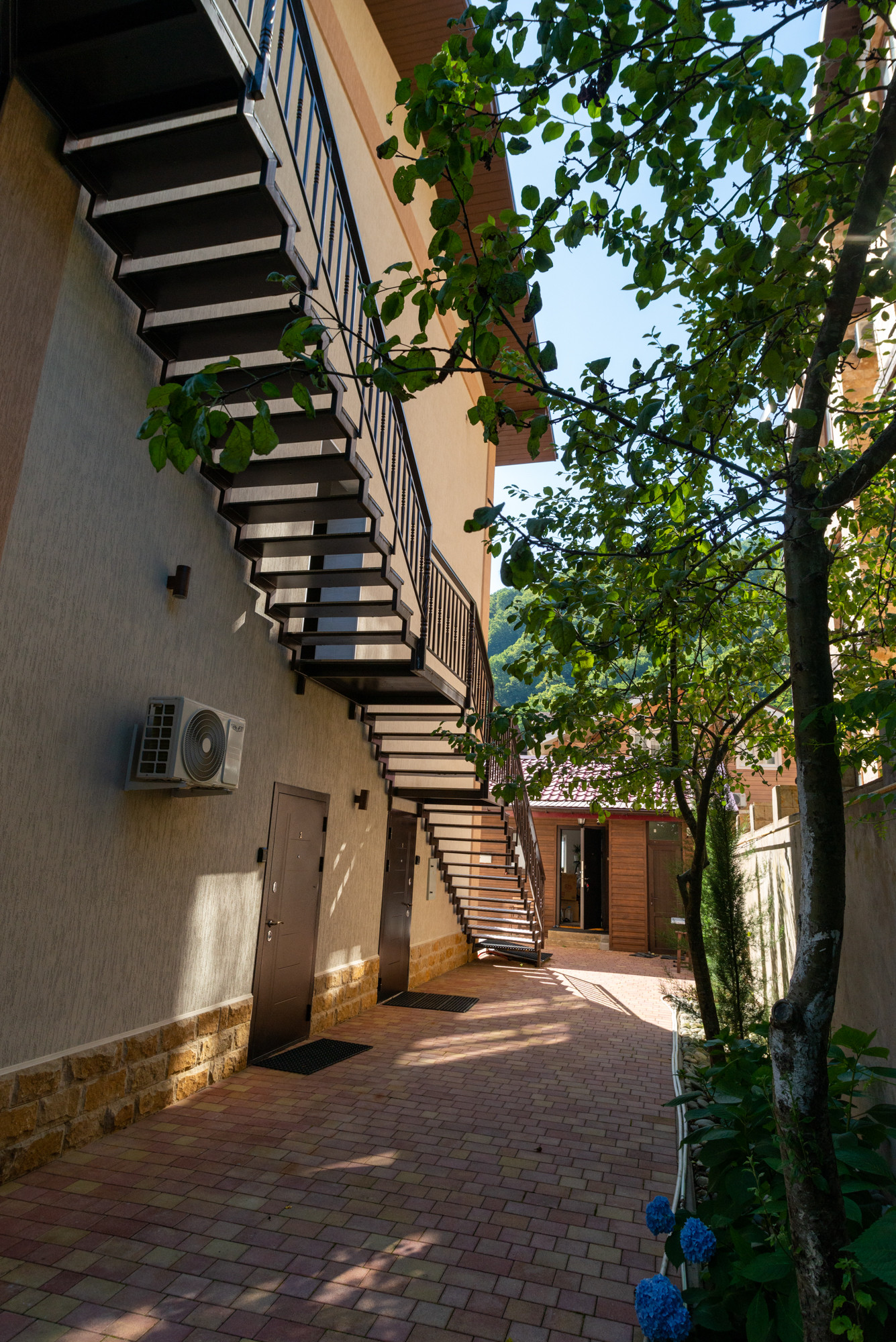 В доме 7 апартаментов с внушительной площадью и детально продуманной планировкой, укомплектованные всем необходимым (пять - евродвушки 46 м2 каждая, две студии по 26 м2 каждая). Практически из каждой комнаты открывается великолепный вид на горный пейзаж. Помимо этого на территории есть небольшой отдельно стоящий домик, который можно использовать как для собственного проживания, так и в качестве дополнительного помещения для сдачи.