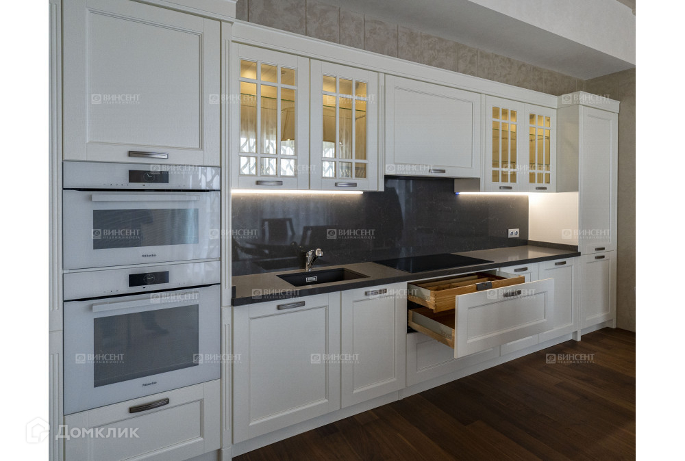 Вся отделка, мебель и аксессуары укомплектованы строго по дизайн-проекту, и останутся покупателю.