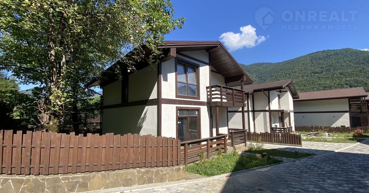 Благодаря многочисленным панорамным окнам по фасаду, высоте потолков до 3,5 метров, дом очень светлый, а с балконов открывается вид на горы, панорама на поселок и закатная гора Ачишхо.